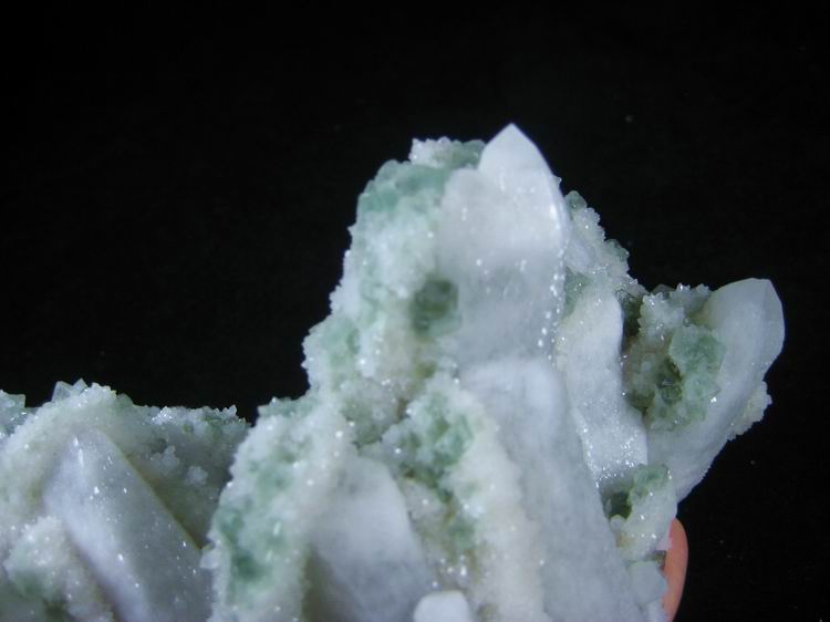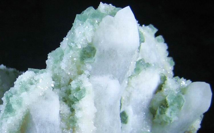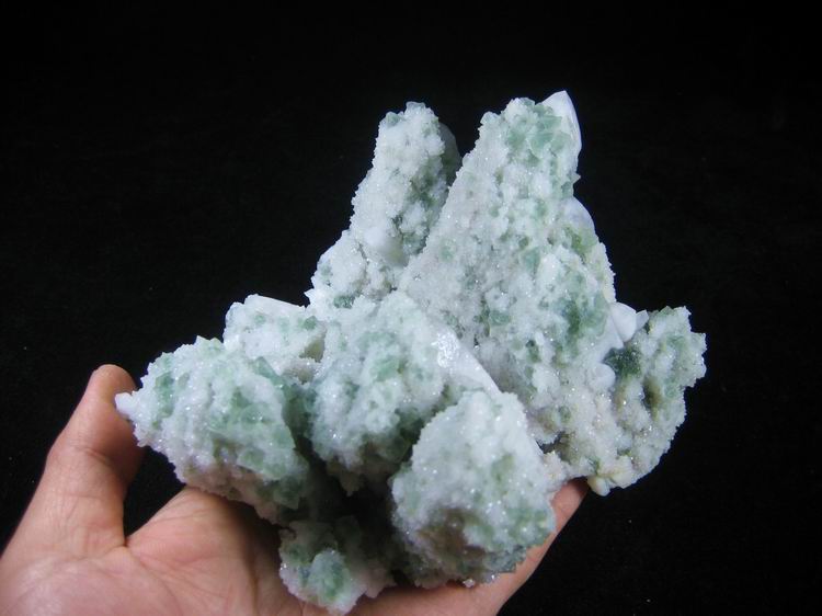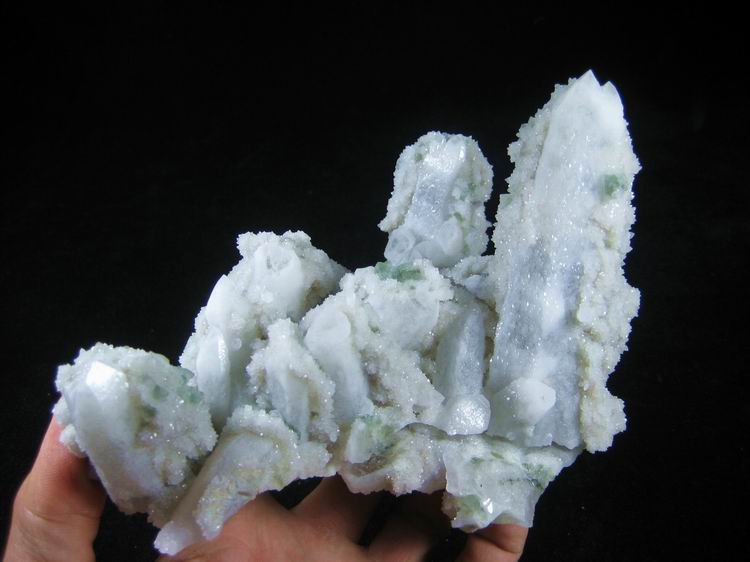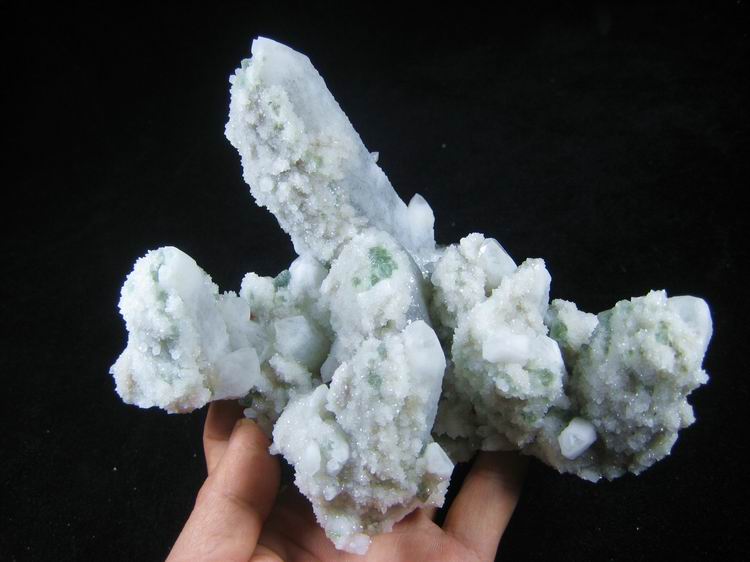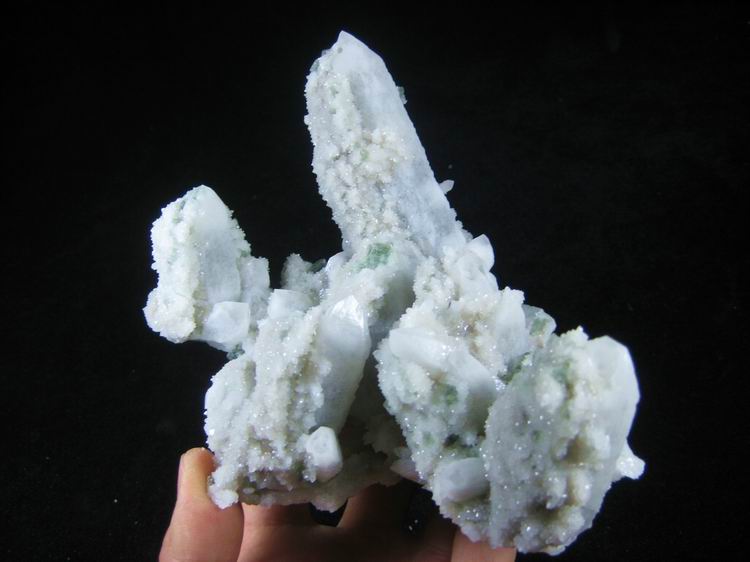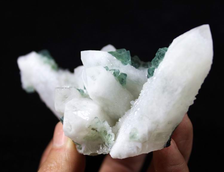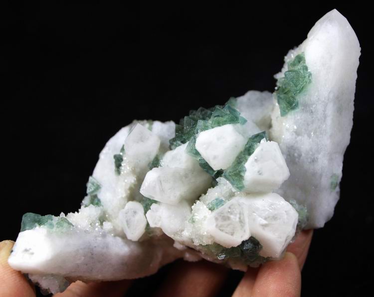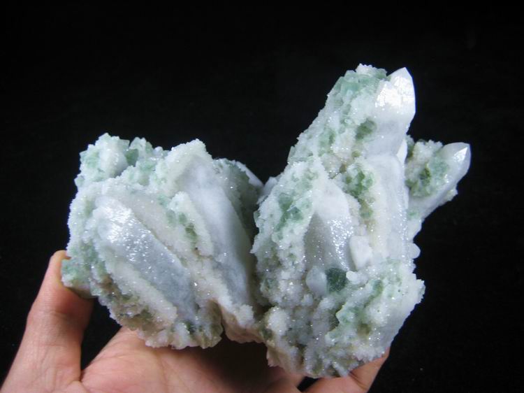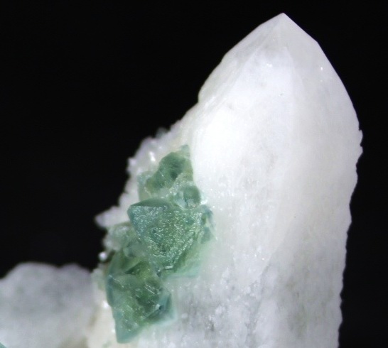 NEW from Inner Mongolia - Clear and Transparent Octahedron Fluorite crystals on Quartz clusters. The quartz is interesting: all sides are snow white and frosty, but the top and core are clear and transparent. So when looking from the top, it looks like a glass window in winter ¨C white frost all around but center is clear and transparent. click on image to enlarge Octahedron Fluorite Quartz CM430995 USD 250.00 Size: 15.5*12*7 cm Weight: 915 g Chifeng, Inner Mongolia