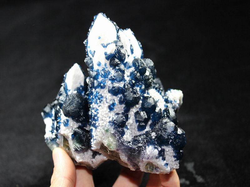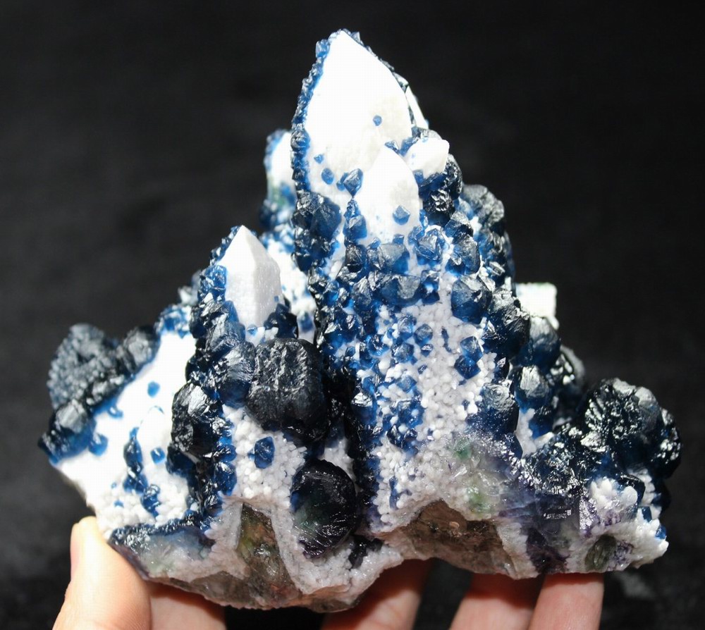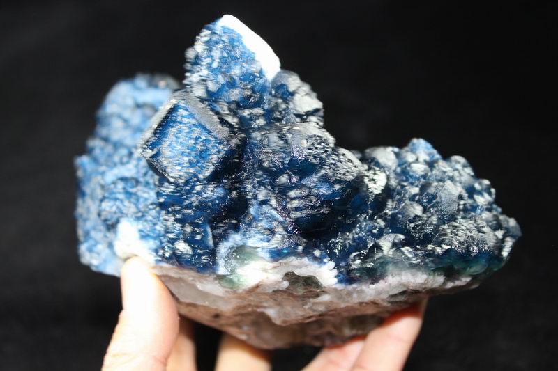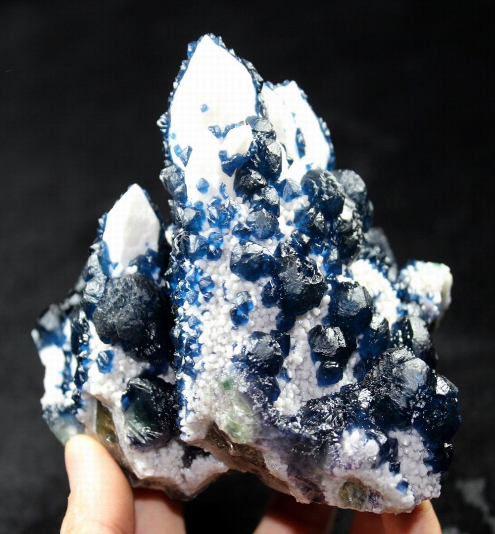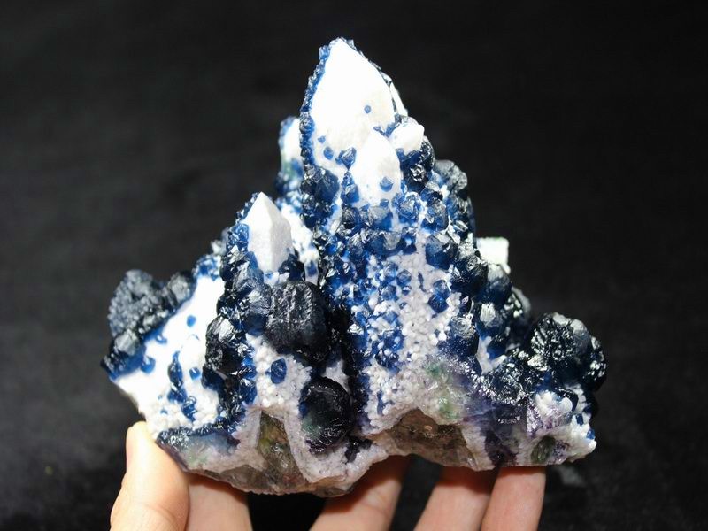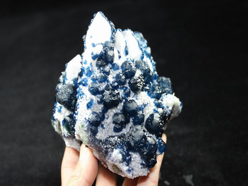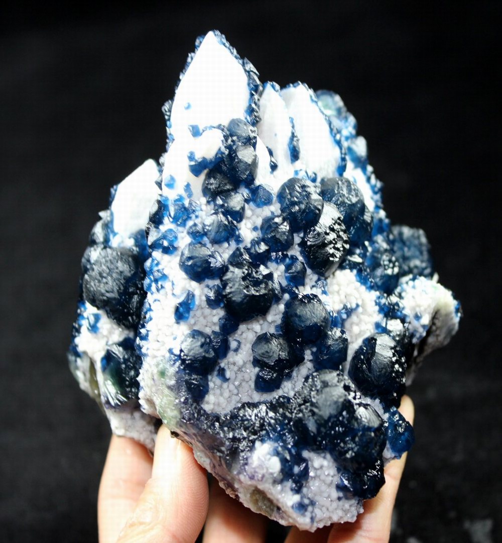 click on image to enlarge Blue Fluorite on Quartz CM550113 USD 835.00 Size: 12*9.5*9.5 cm, Weight: 845 g Chifeng, Inner Mongolia