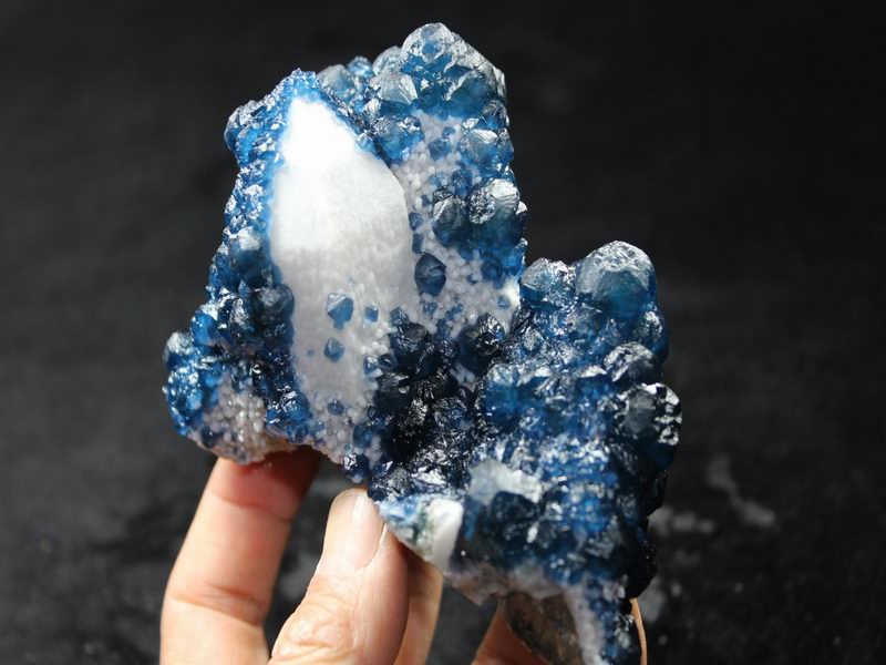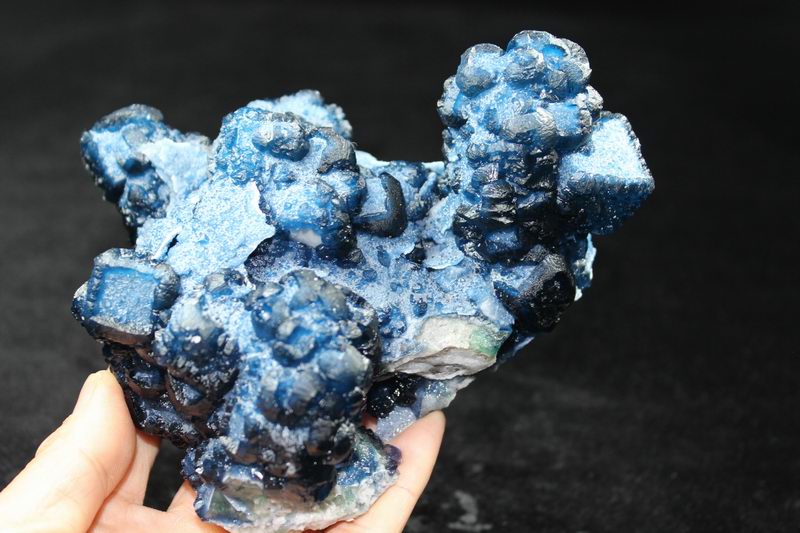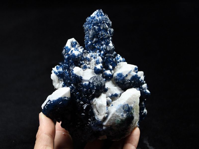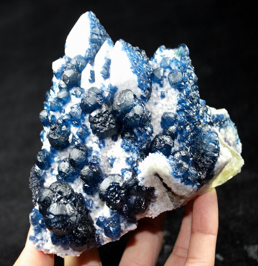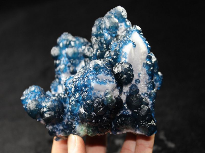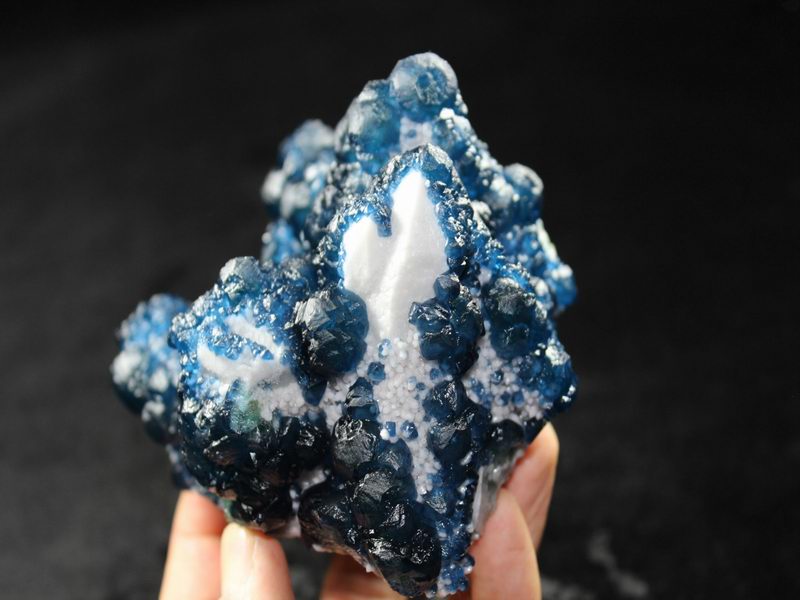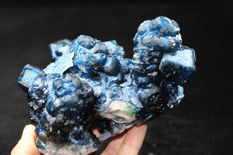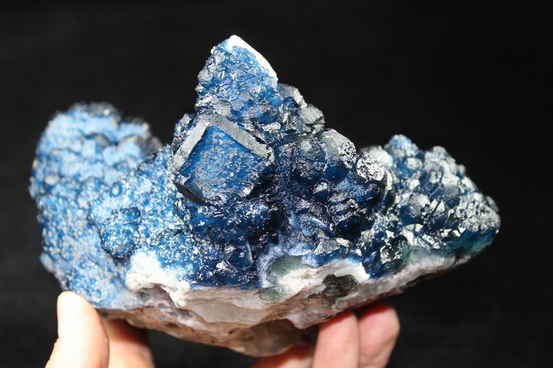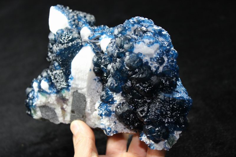 click on image to enlarge Blue Fluorite on Quartz CM550113 USD 835.00 Size: 12*9.5*9.5 cm, Weight: 845 g Chifeng, Inner Mongolia