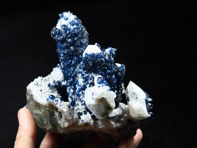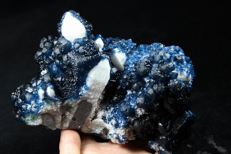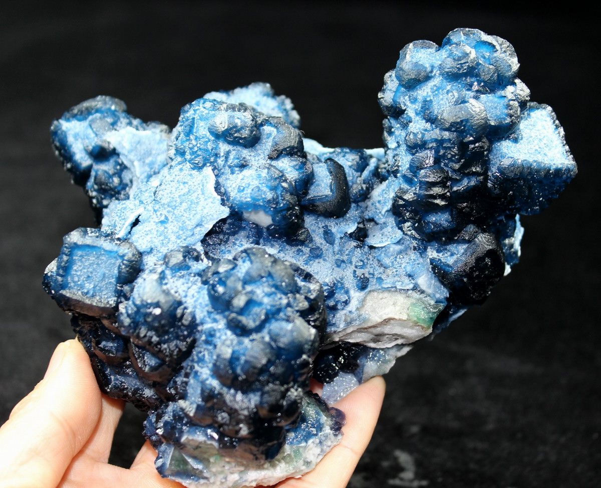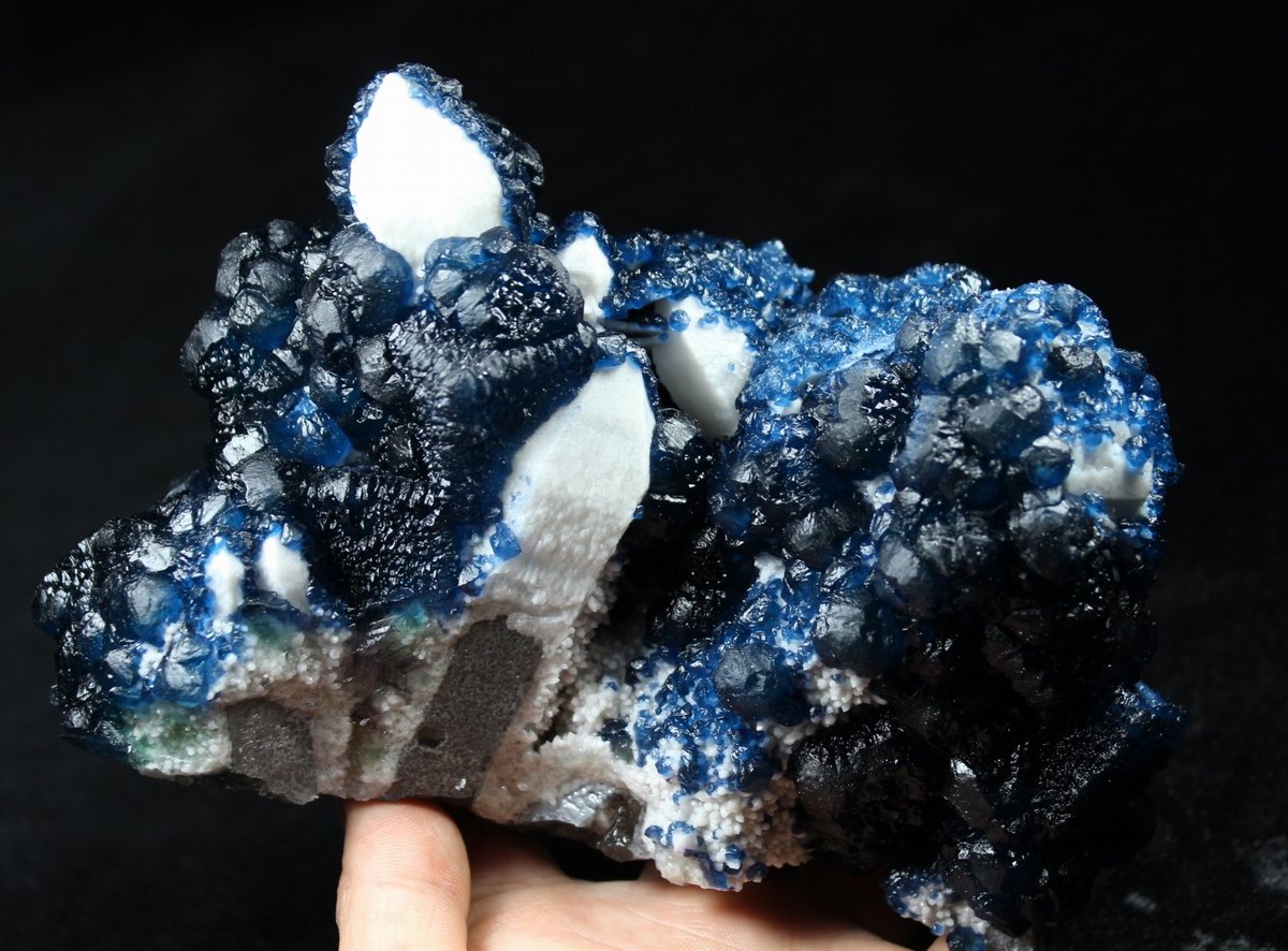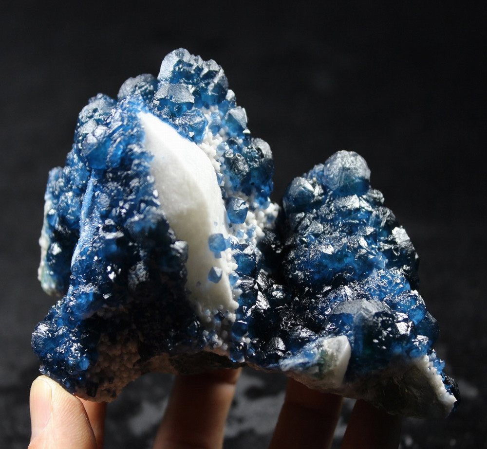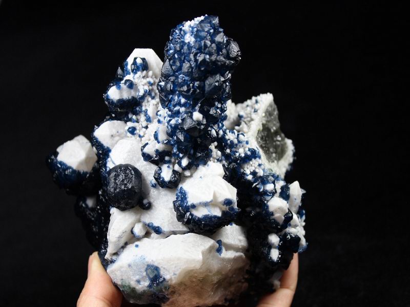 click on image to enlarge Blue Fluorite on Quartz CM550113 USD 835.00 Size: 12*9.5*9.5 cm, Weight: 845 g Chifeng, Inner Mongolia