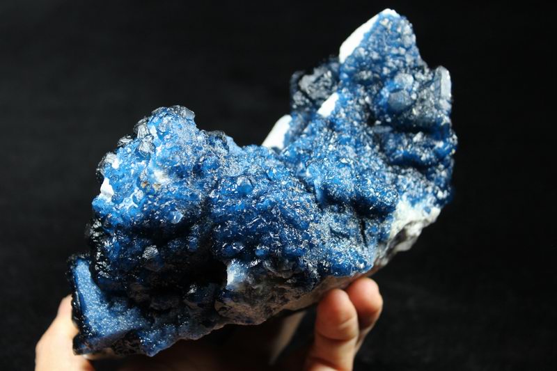 click on image to enlarge Blue Fluorite on Quartz CM570115 USD 670.00 Size: 14.5*12.5*8 cm, Weight: 1050 g Chifeng, Inner Mongolia