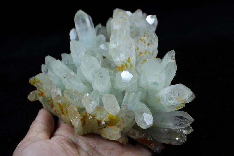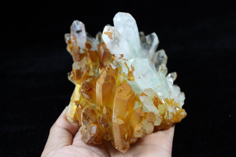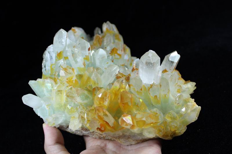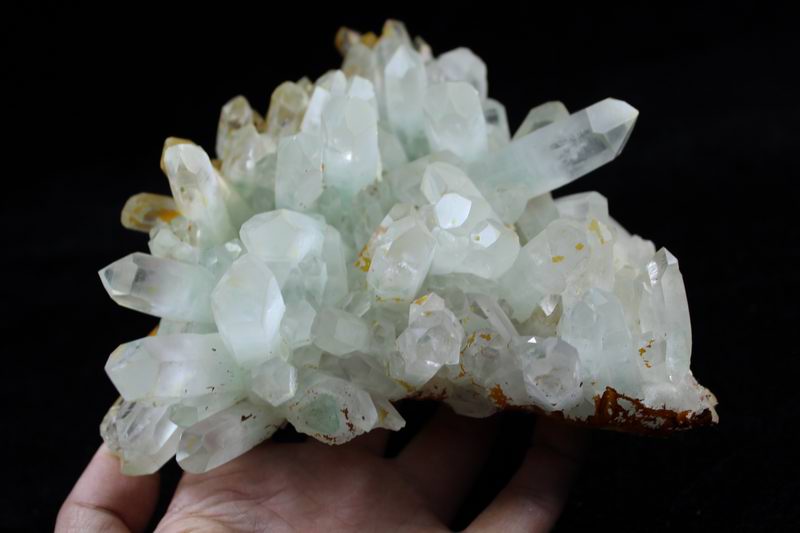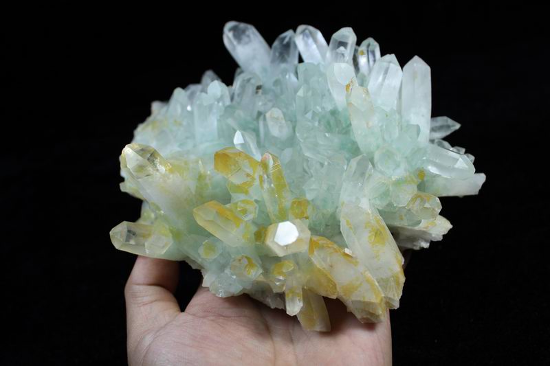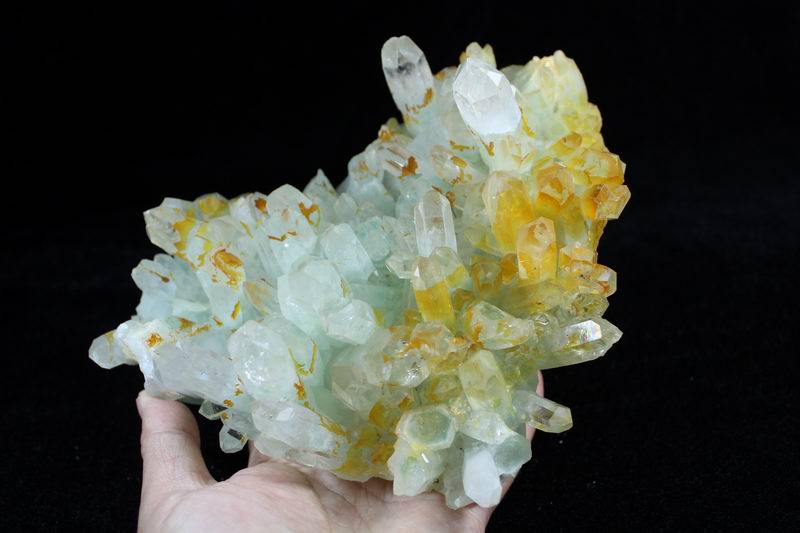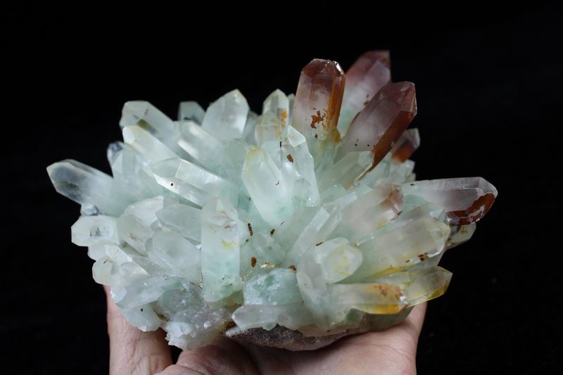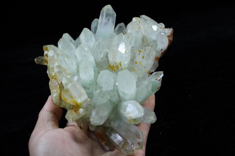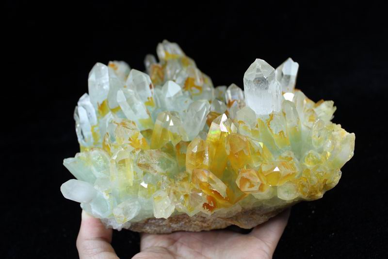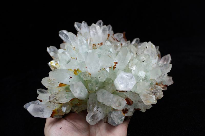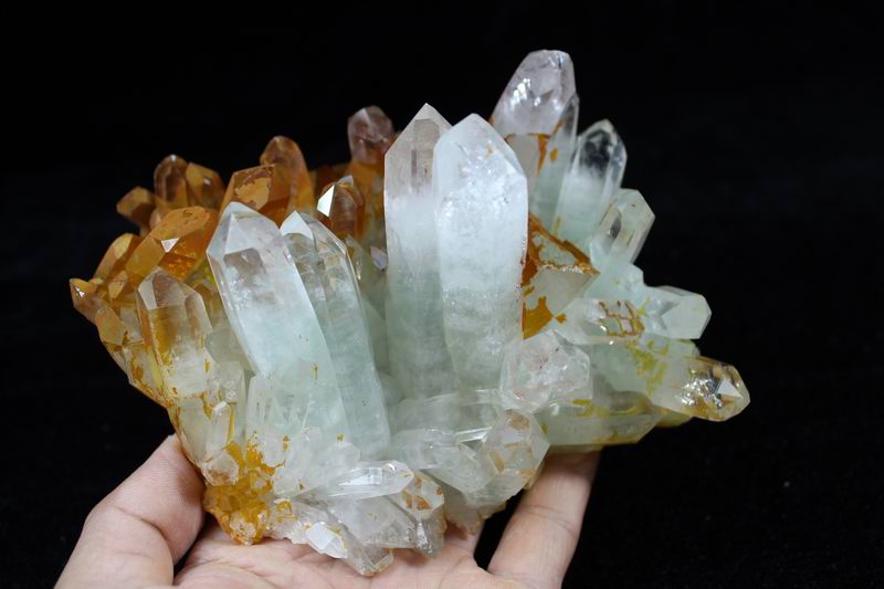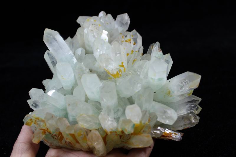 These Quartz clusters are in good condition. The Yellow coating is Hematite which could be cleaned off by water gun easily. click on image to enlarge Quartz with Fuchsite inclusion (with Hematite coating) CM542796 USD498.00 Size: 22*18*10cm Weight: 1980g Madagascar