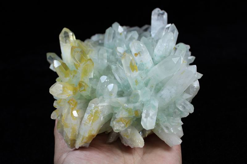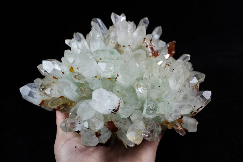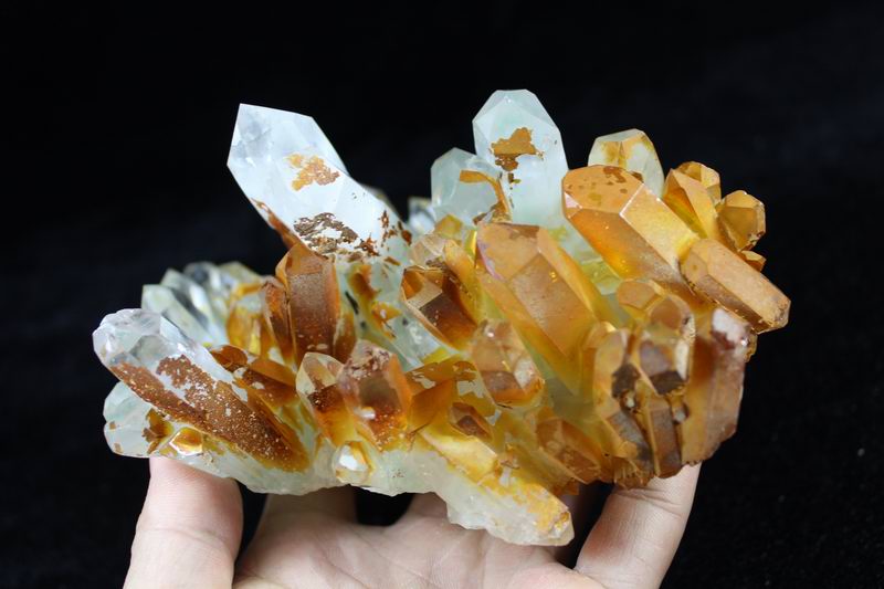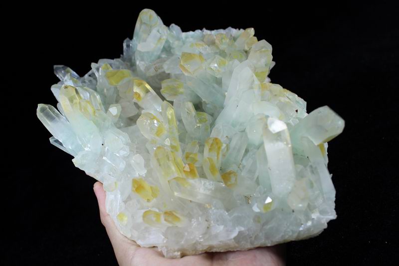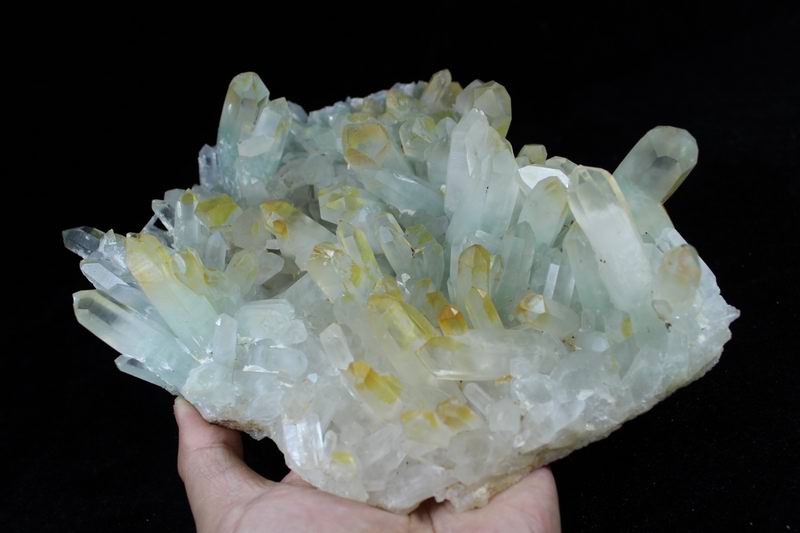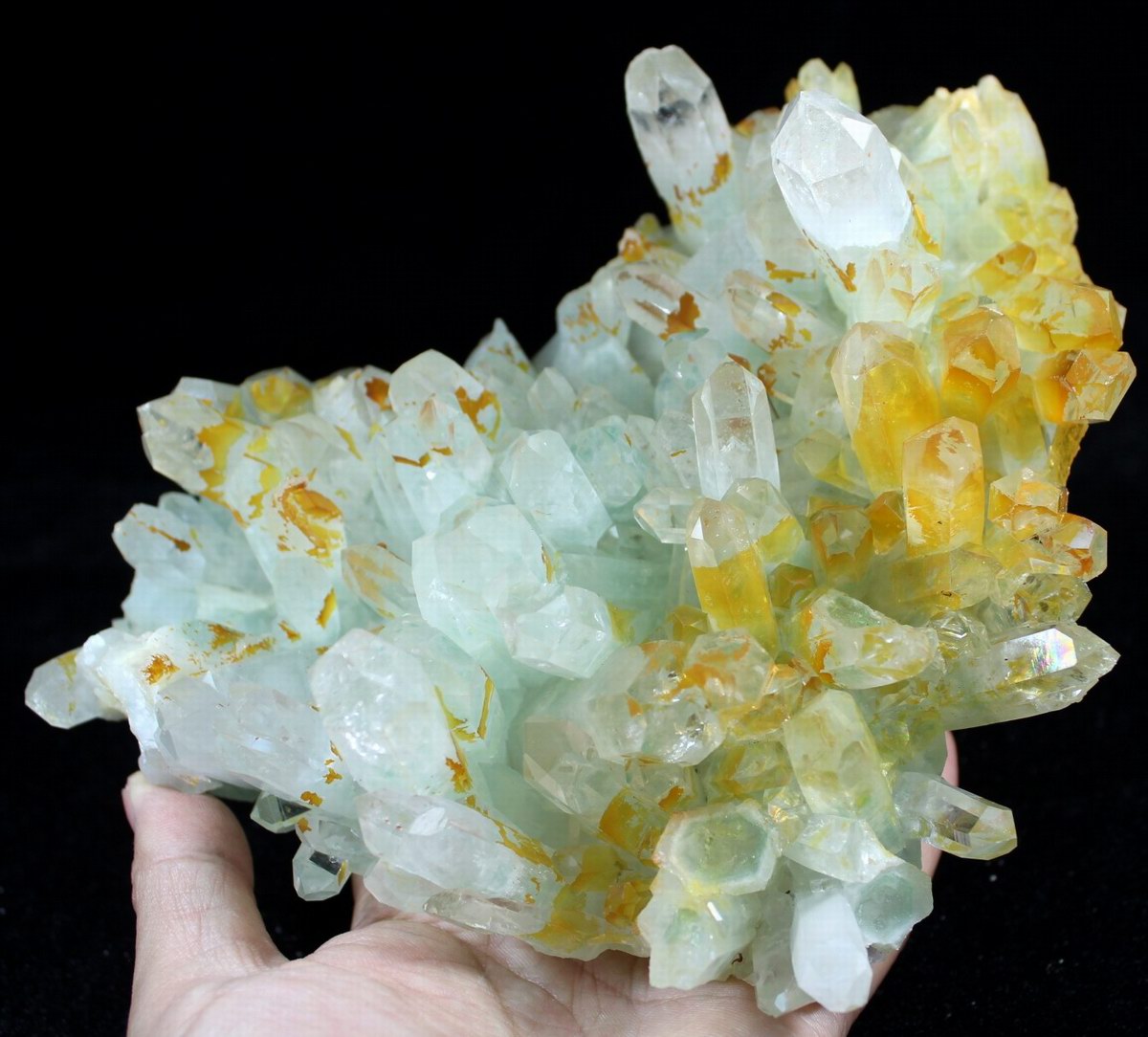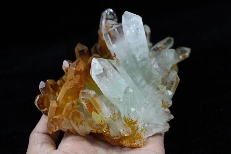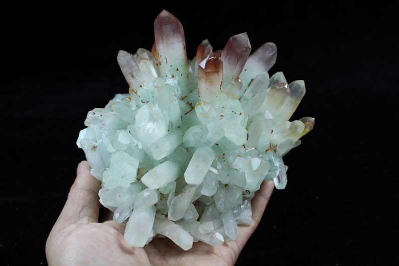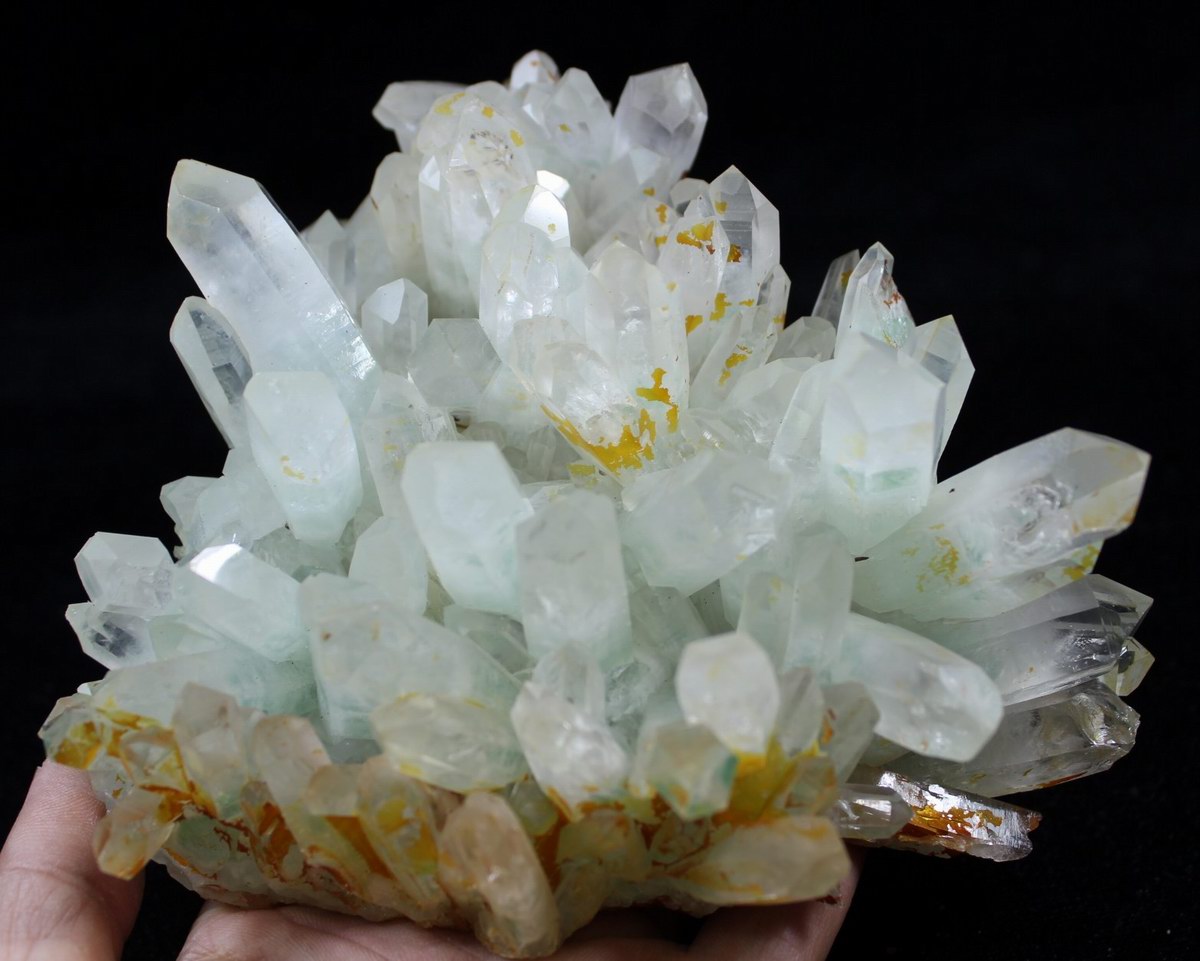 These Quartz clusters are in good condition. The Yellow coating is Hematite which could be cleaned off by water gun easily. click on image to enlarge Quartz with Fuchsite inclusion (with Hematite coating) CM542796 USD498.00 Size: 22*18*10cm Weight: 1980g Madagascar