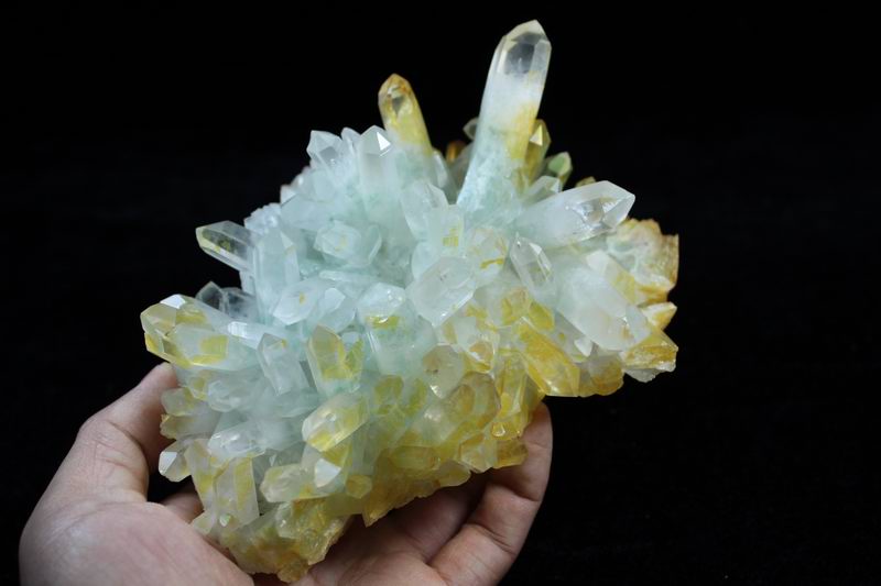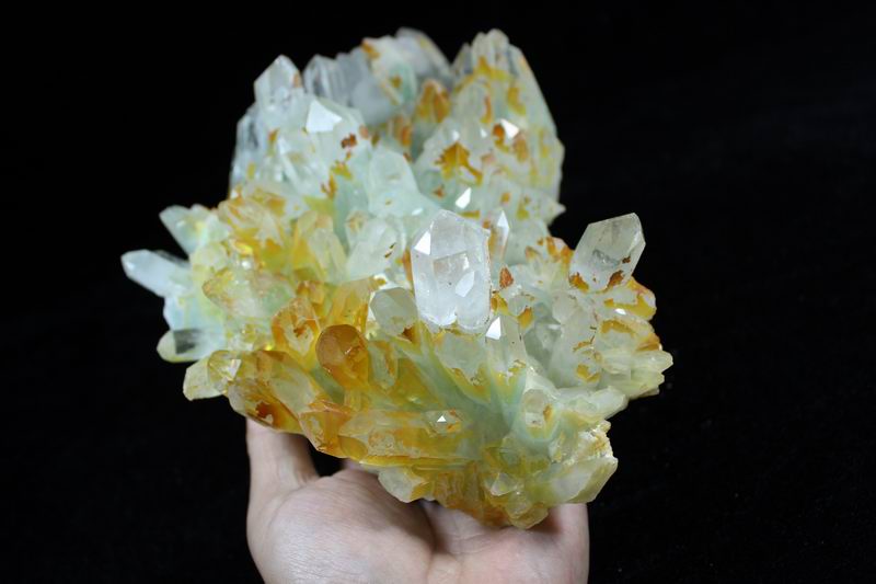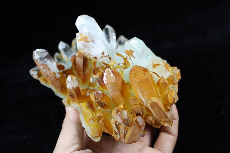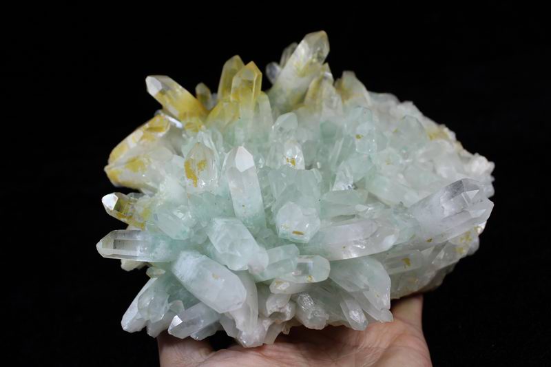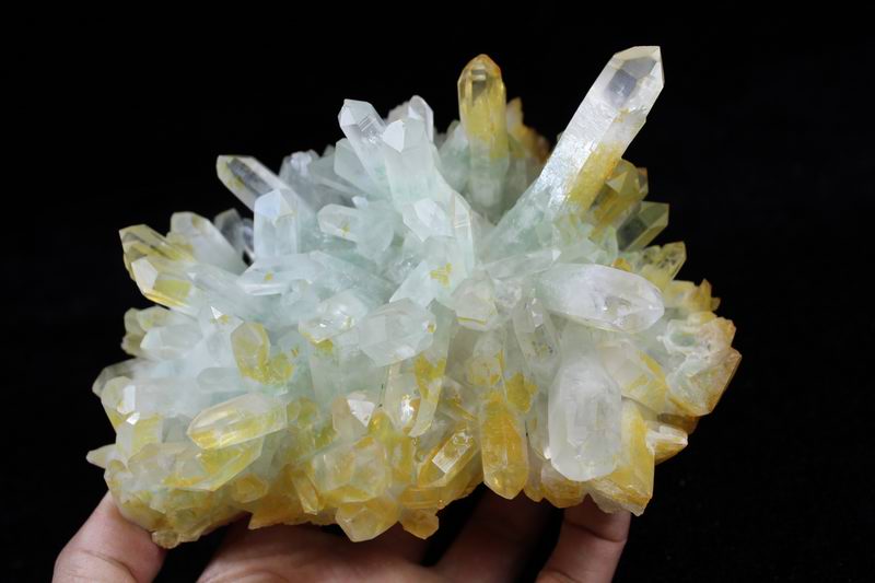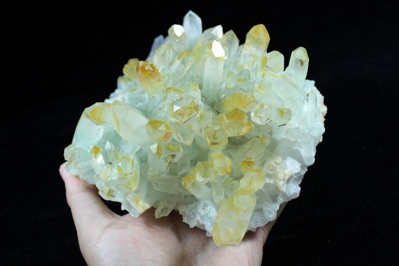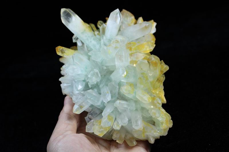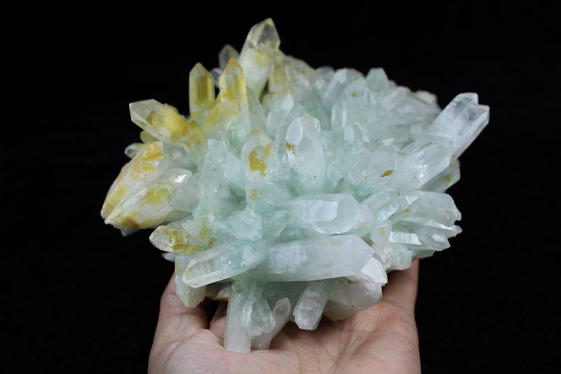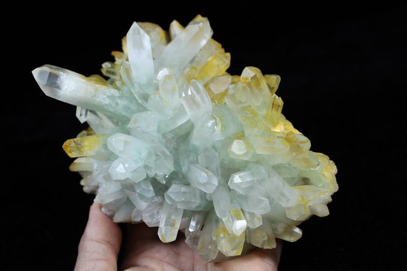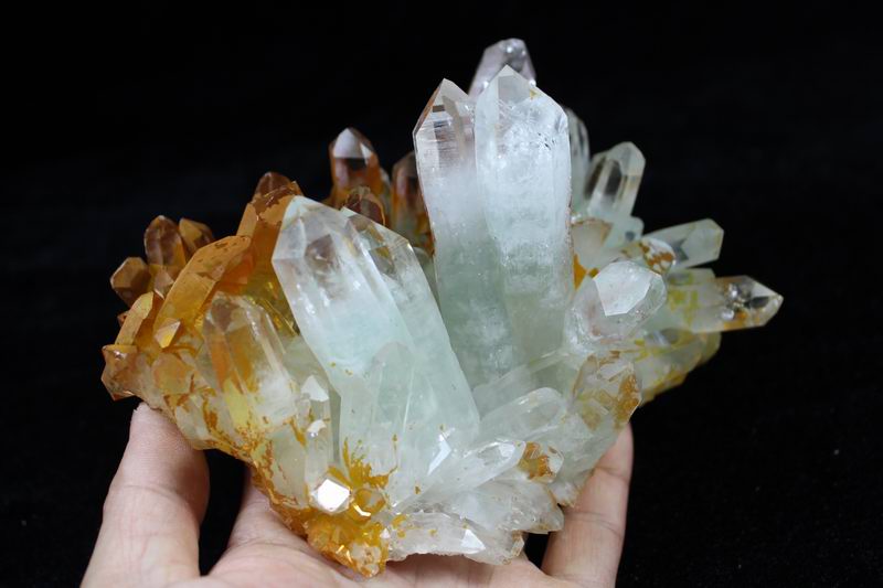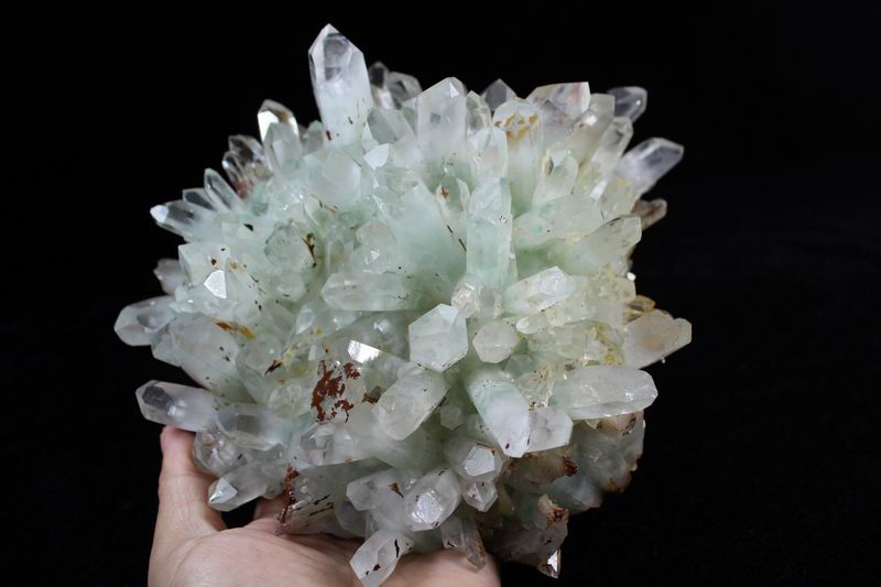 These Quartz clusters are in good condition. The Yellow coating is Hematite which could be cleaned off by water gun easily. click on image to enlarge Quartz with Fuchsite inclusion (with Hematite coating) CM542796 USD498.00 Size: 22*18*10cm Weight: 1980g Madagascar