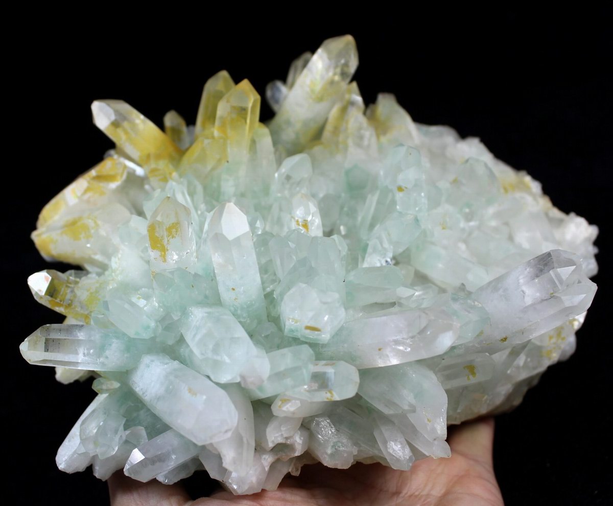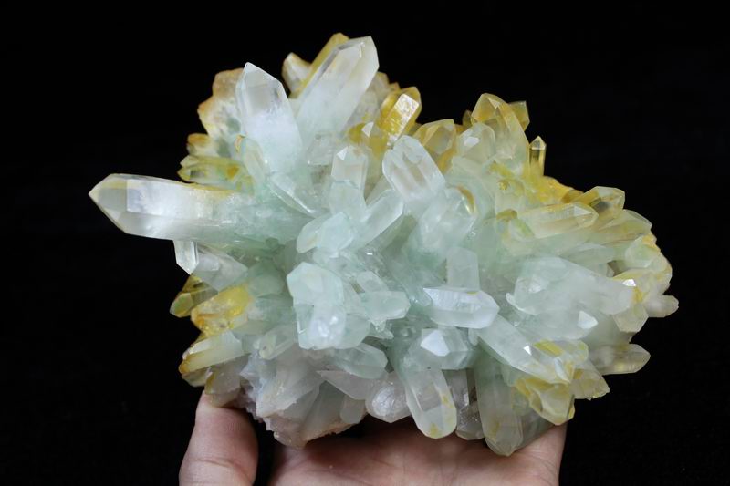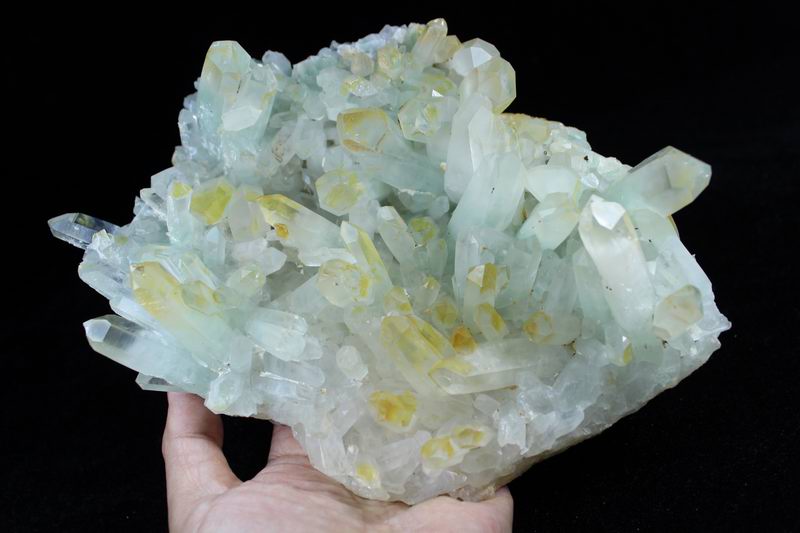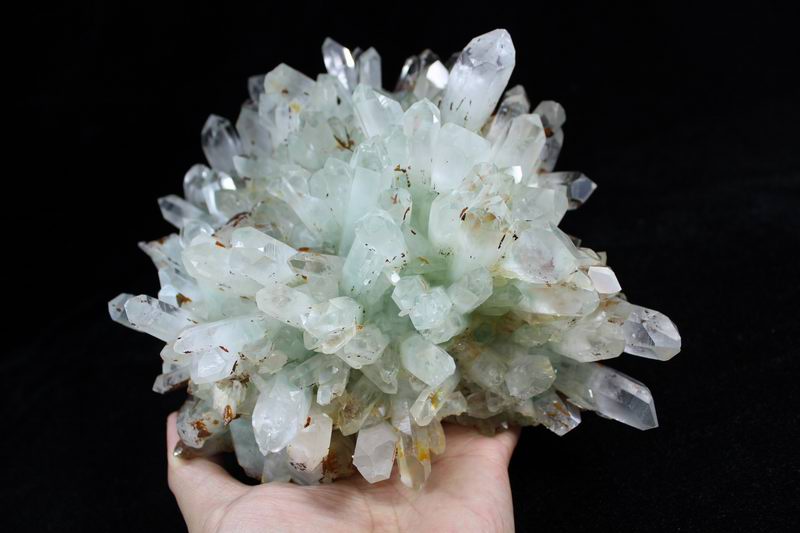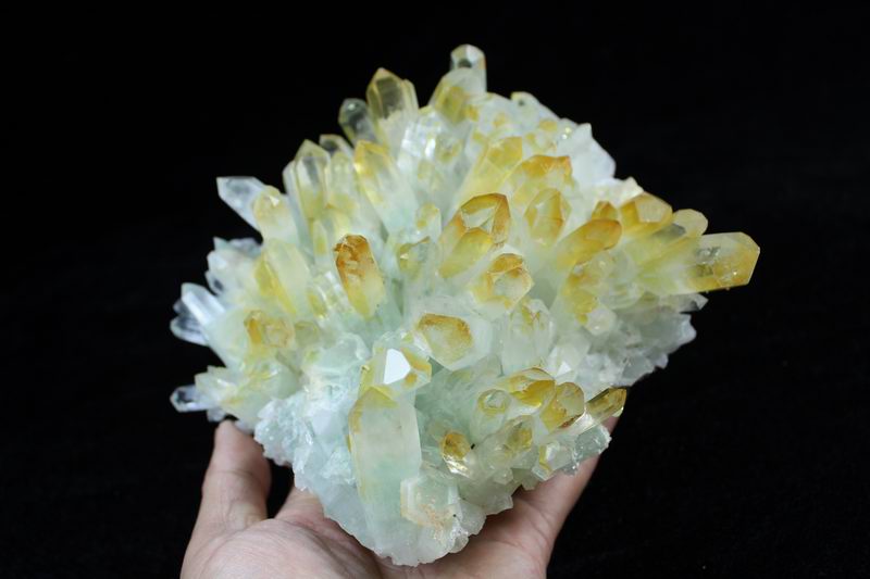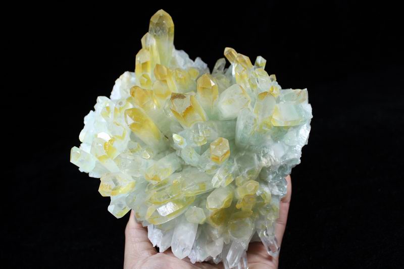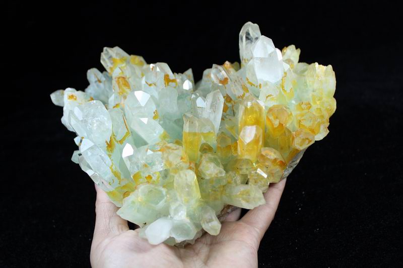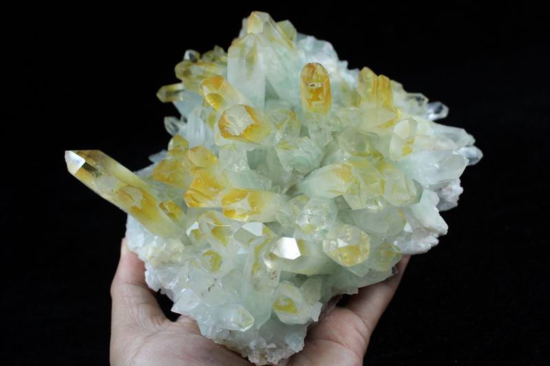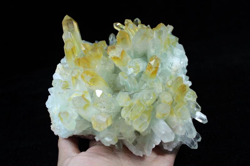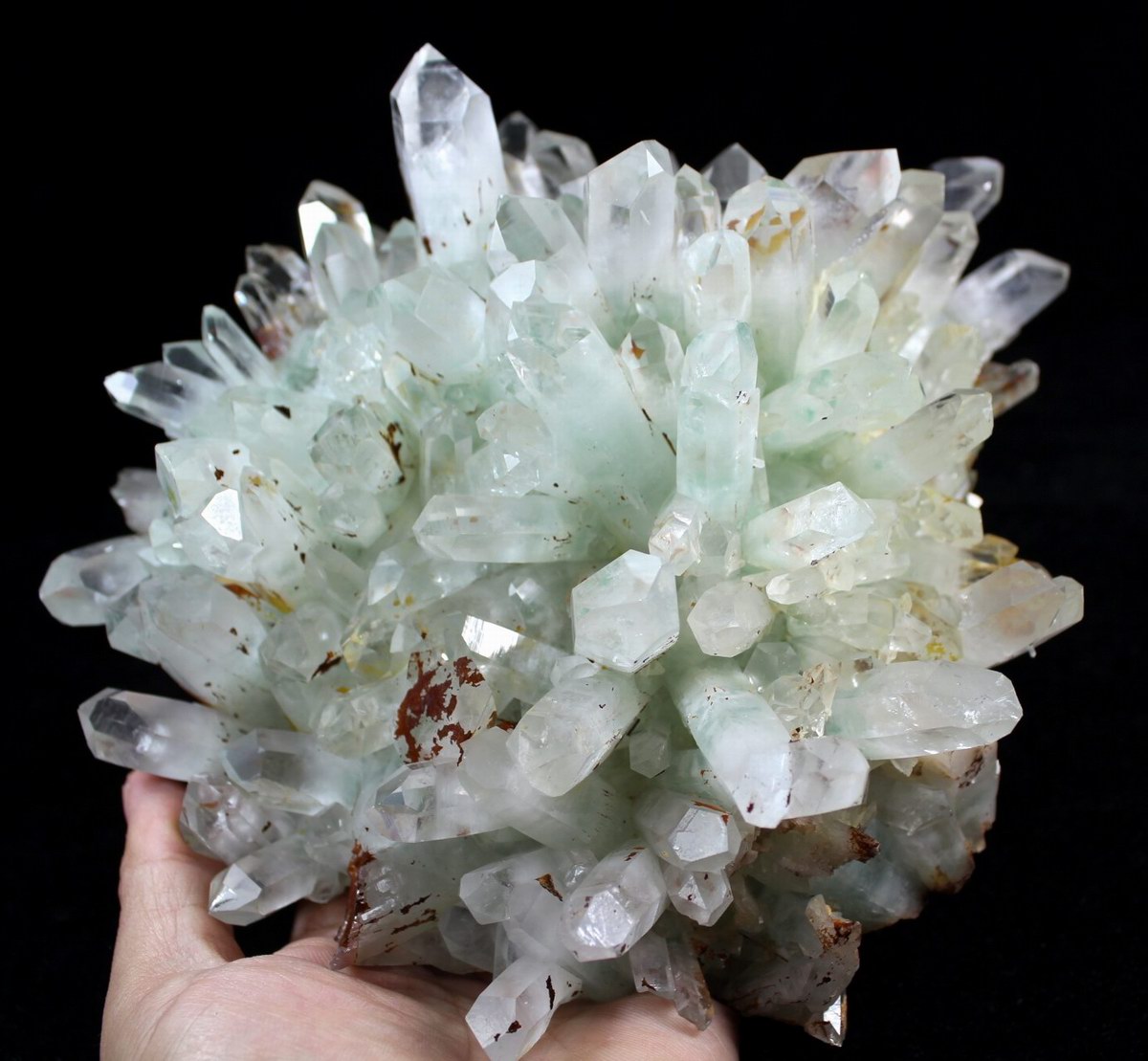 These Quartz clusters are in good condition. The Yellow coating is Hematite which could be cleaned off by water gun easily. click on image to enlarge Quartz with Fuchsite inclusion (with Hematite coating) CM542796 USD498.00 Size: 22*18*10cm Weight: 1980g Madagascar