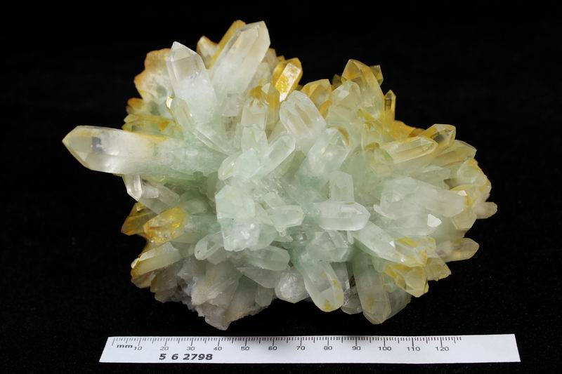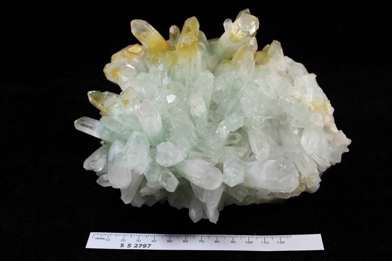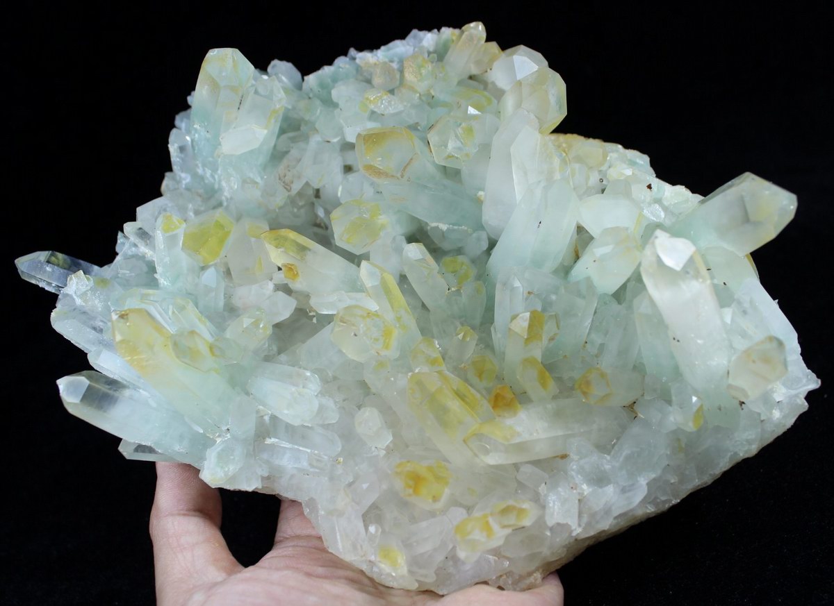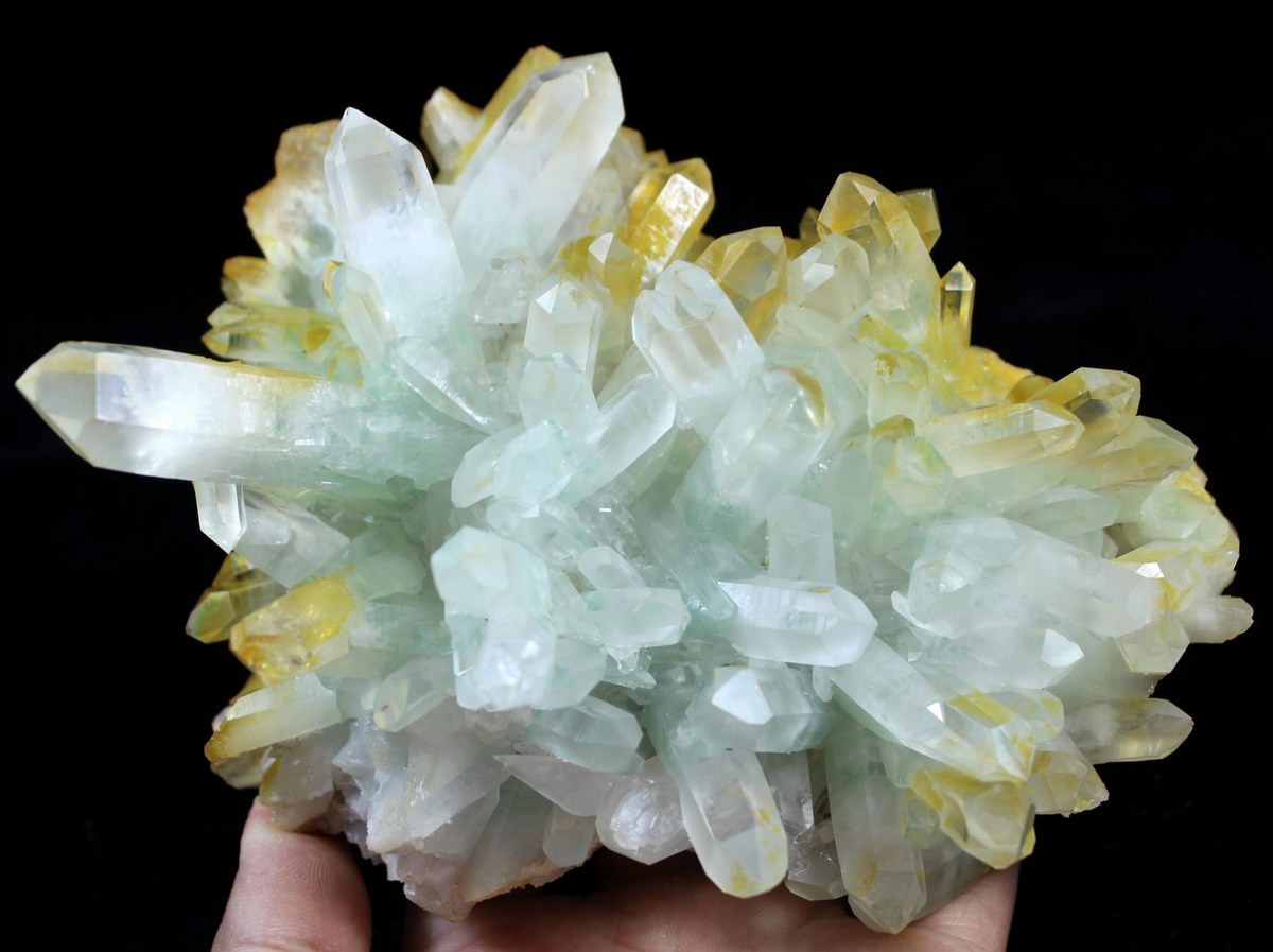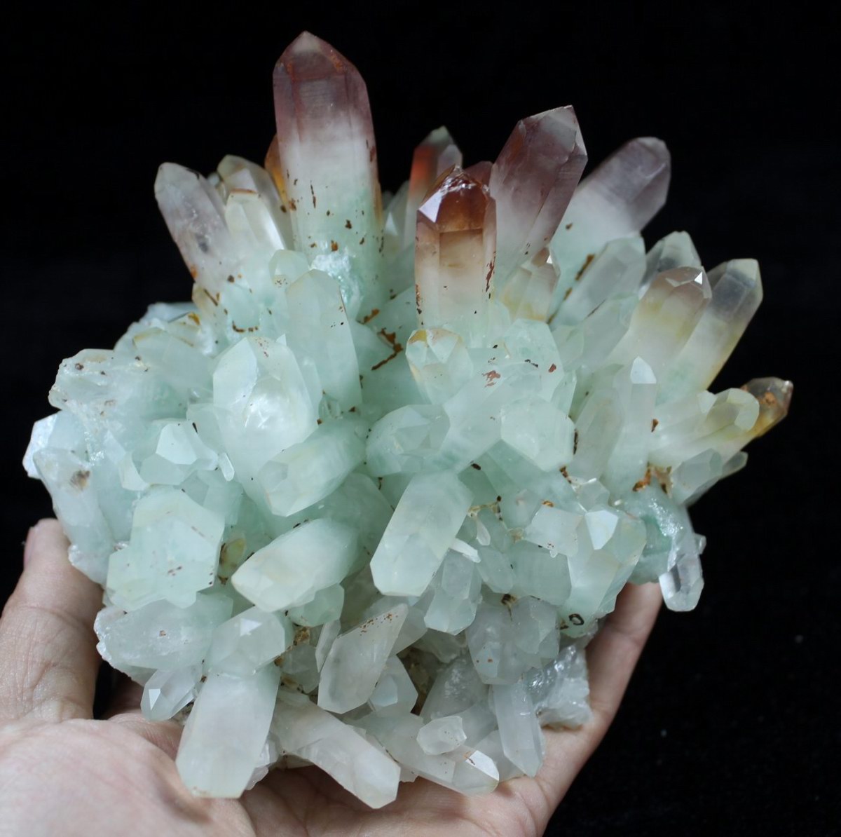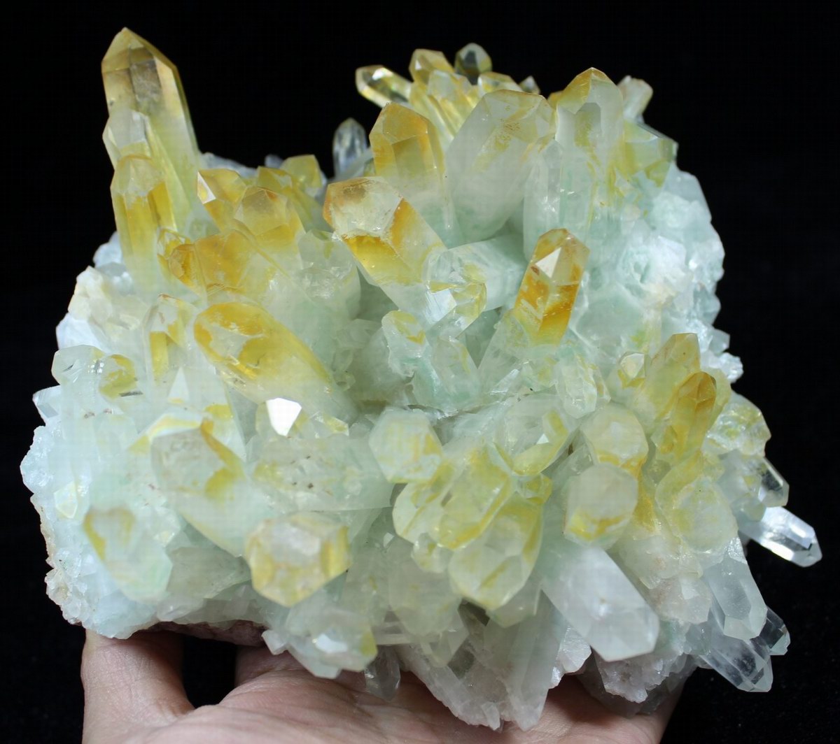 These Quartz clusters are in good condition. The Yellow coating is Hematite which could be cleaned off by water gun easily. click on image to enlarge Quartz with Fuchsite inclusion (with Hematite coating) CM542796 USD498.00 Size: 22*18*10cm Weight: 1980g Madagascar