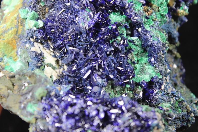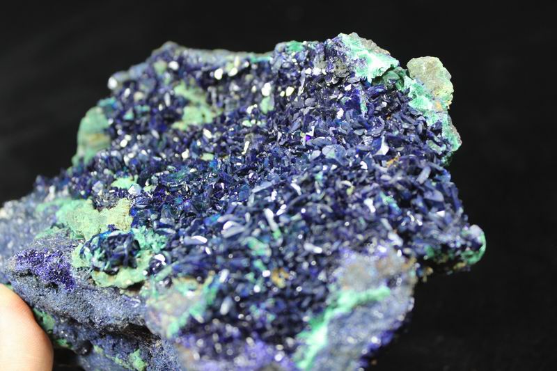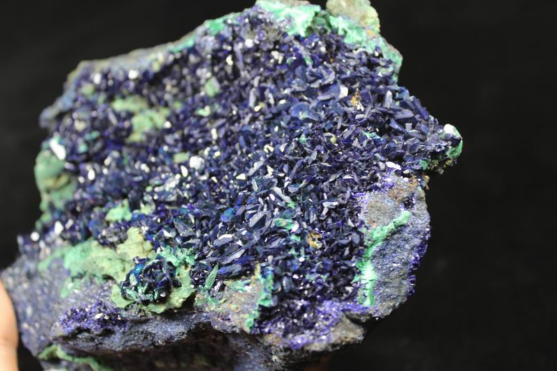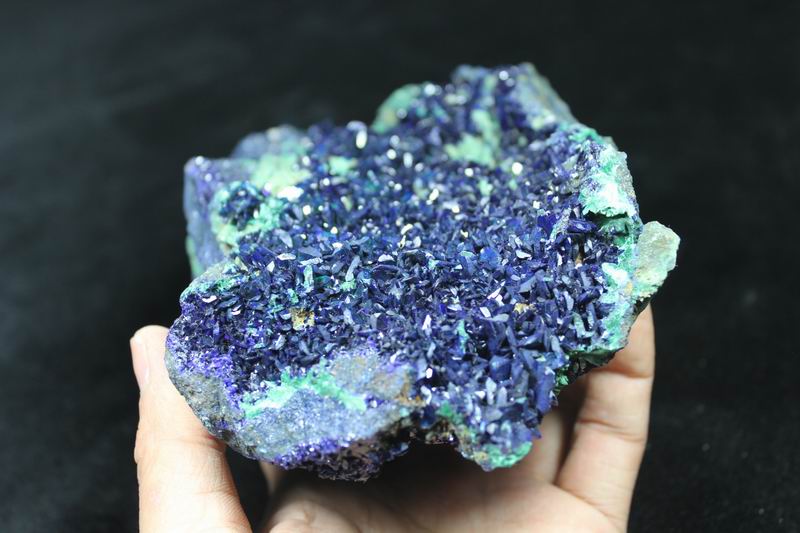 They're from Sepon Mine, Vilabouly Dist., Savannakhet Prov., Laos. It's a new locality. The Azurite crystals are highly lustrous, translucent, with rich "electric-blue" color under bright light. Very showy and attractive! click on image to enlarge Azurite & Malachite CM541012 USD668.00 Size: 16.5*11*7.5cm Weight: 1430g Sepon Mine, Vilabouly Dist., Savannakhet Prov., Laos