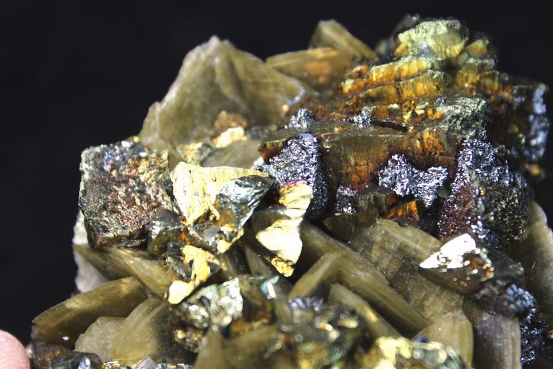 Excellent! RARE TENNANTITE with Quite Shiny Golden and Irridescent Chalcopyrite crystals are growing on well formed bladed Siderite crystals that are brown, sharp and translucent. click on image to enlarge click on image to enlarge Tennantite (RARE), Siderite & Chalcopyrite CM324044EE USD 650.00 Size: 10*6.5*4.5 cm Weight: 415g Hezhou, Guangxi