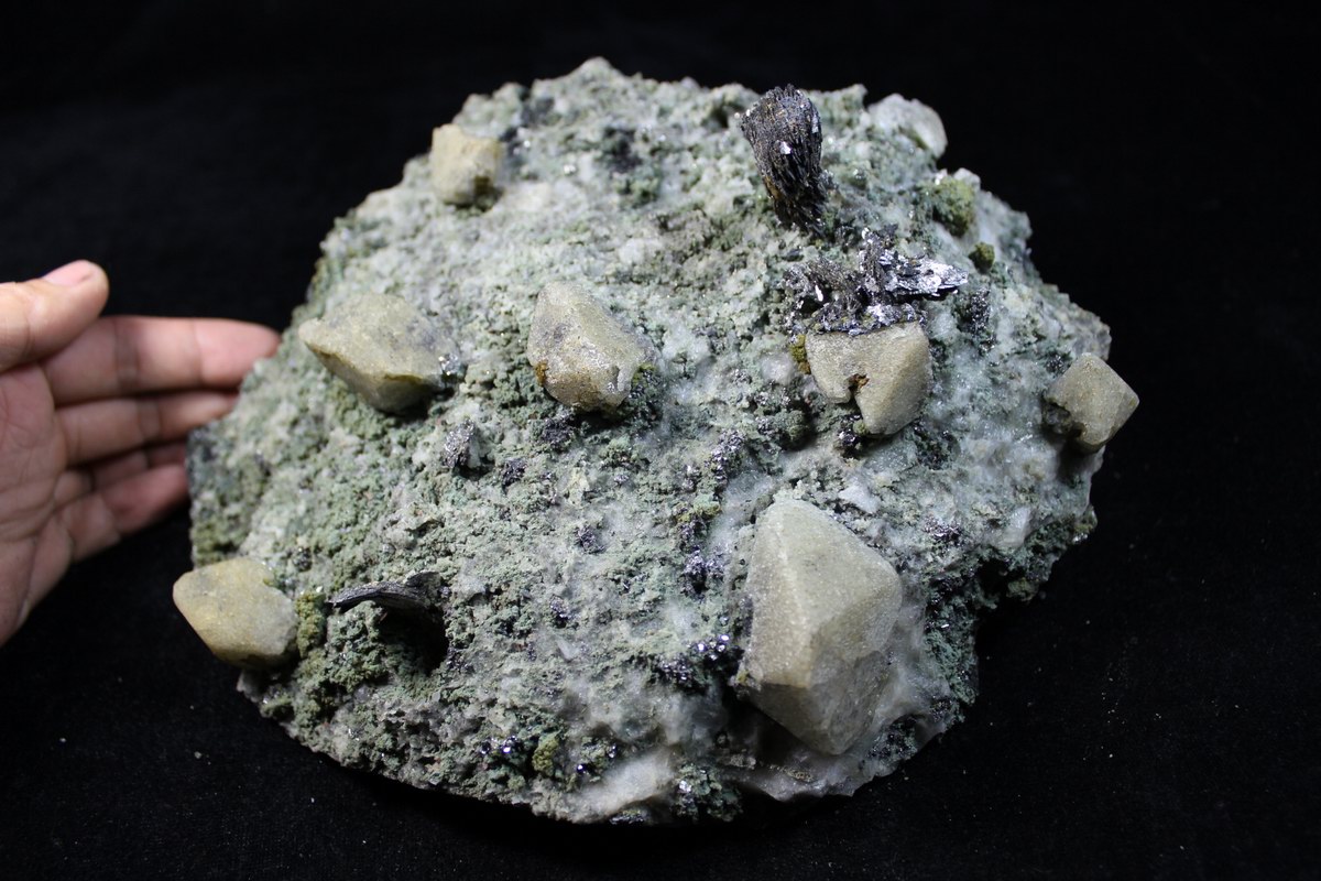 click on image to enlarge Scheelite, Lollingite & Magnetite CM383069 USD 670.00 Size: 22*20*10 cm, Weight: 4730 g Chifeng, Inner Mongolia