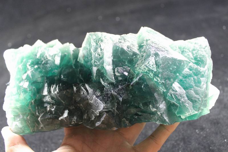 click on image to enlarge Green Octahedron Fluorite CM541922 USD285.00 Size: 23.5*12*7cm Weight: 2760g Xiefang, Jiangxi