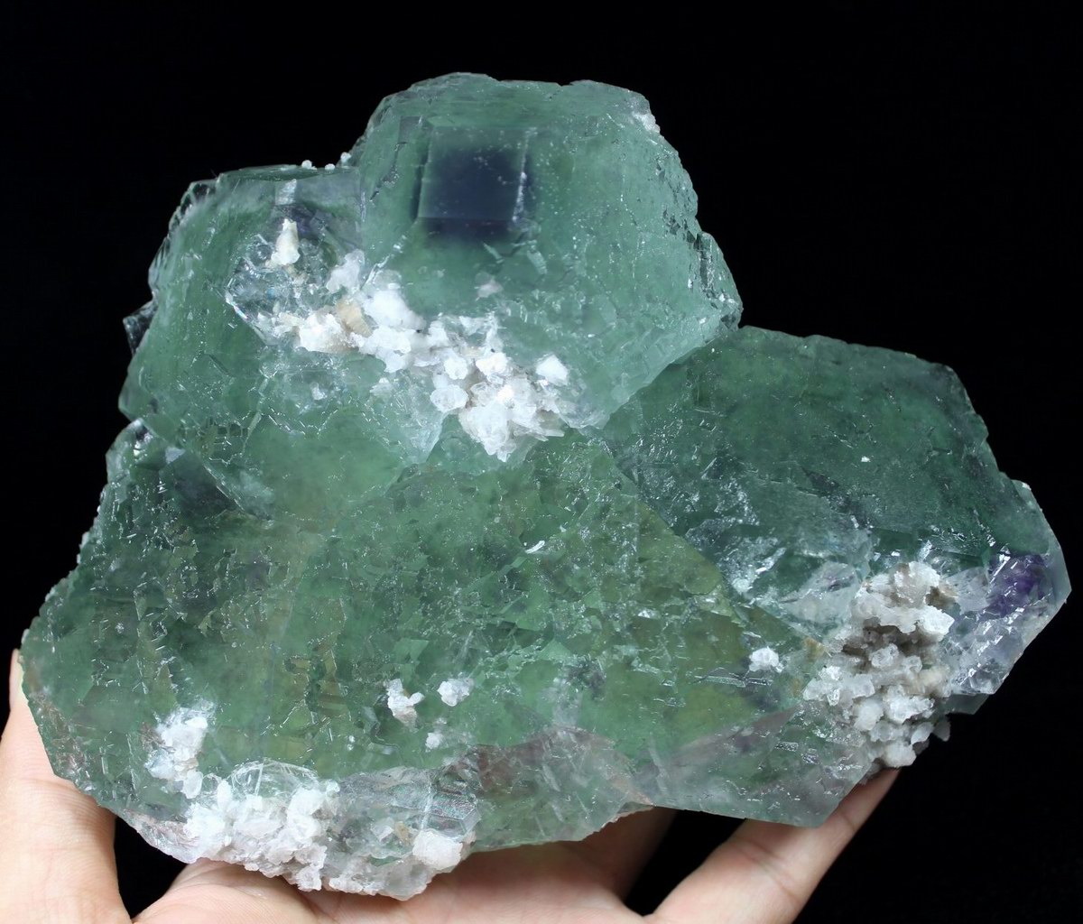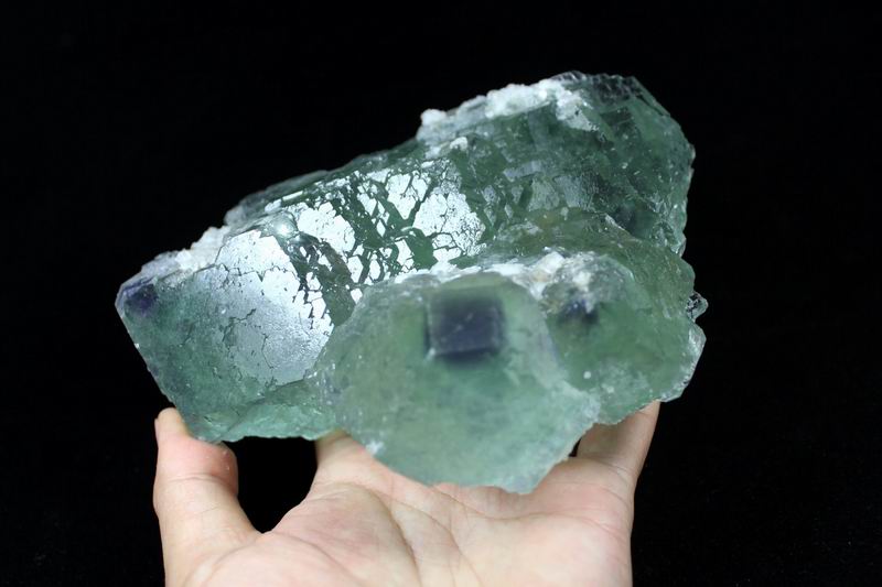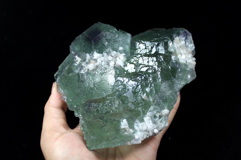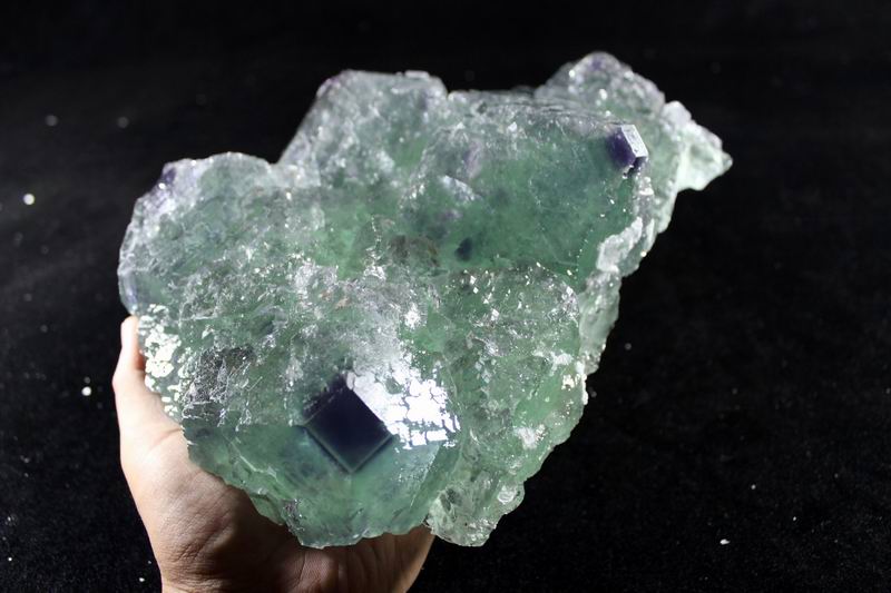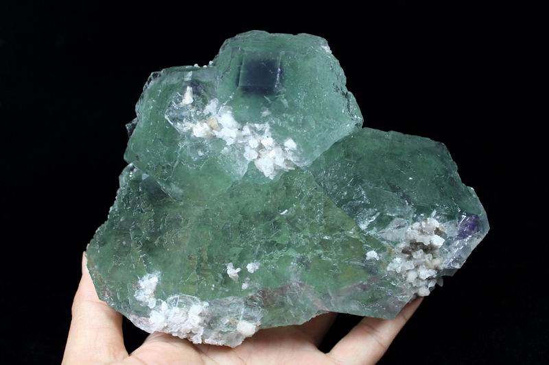 click on image to enlarge Green Fluorite with Purple Phantom CM501946 USD835.00 Size: 24*17.5*8cm Weight: 5055g Chenzhou, Hunan