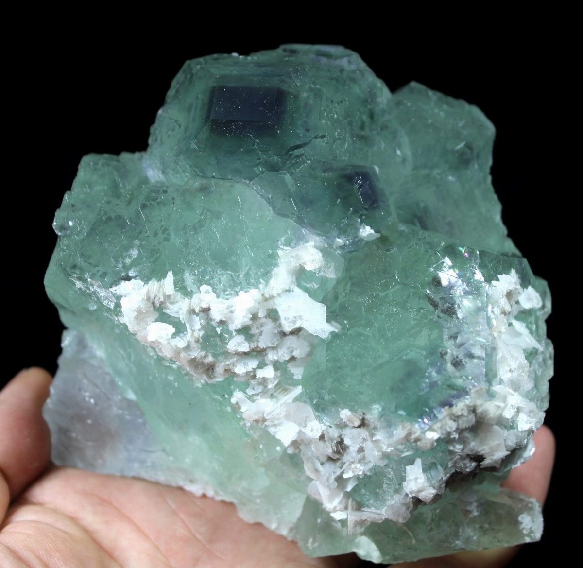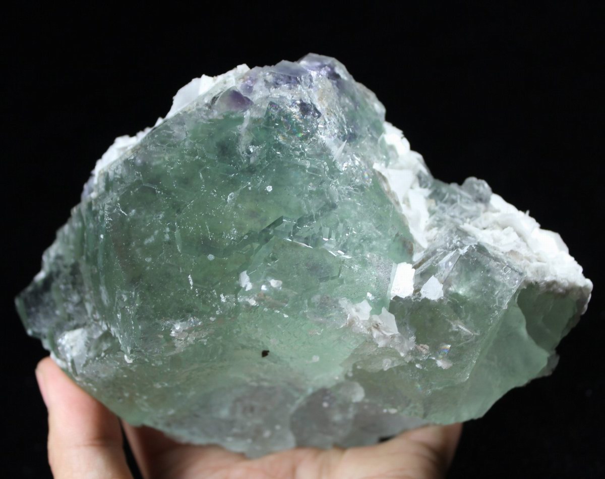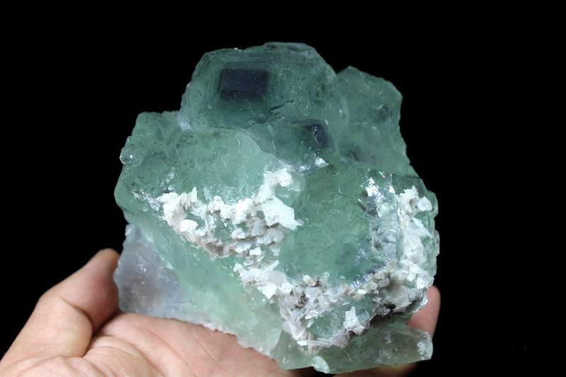 click on image to enlarge Calcite on Green Fluorite with Purple Phantom CM521876 USD498.00 Size: 16*12*6.5cm Weight: 1535g Chenzhou, Hunan