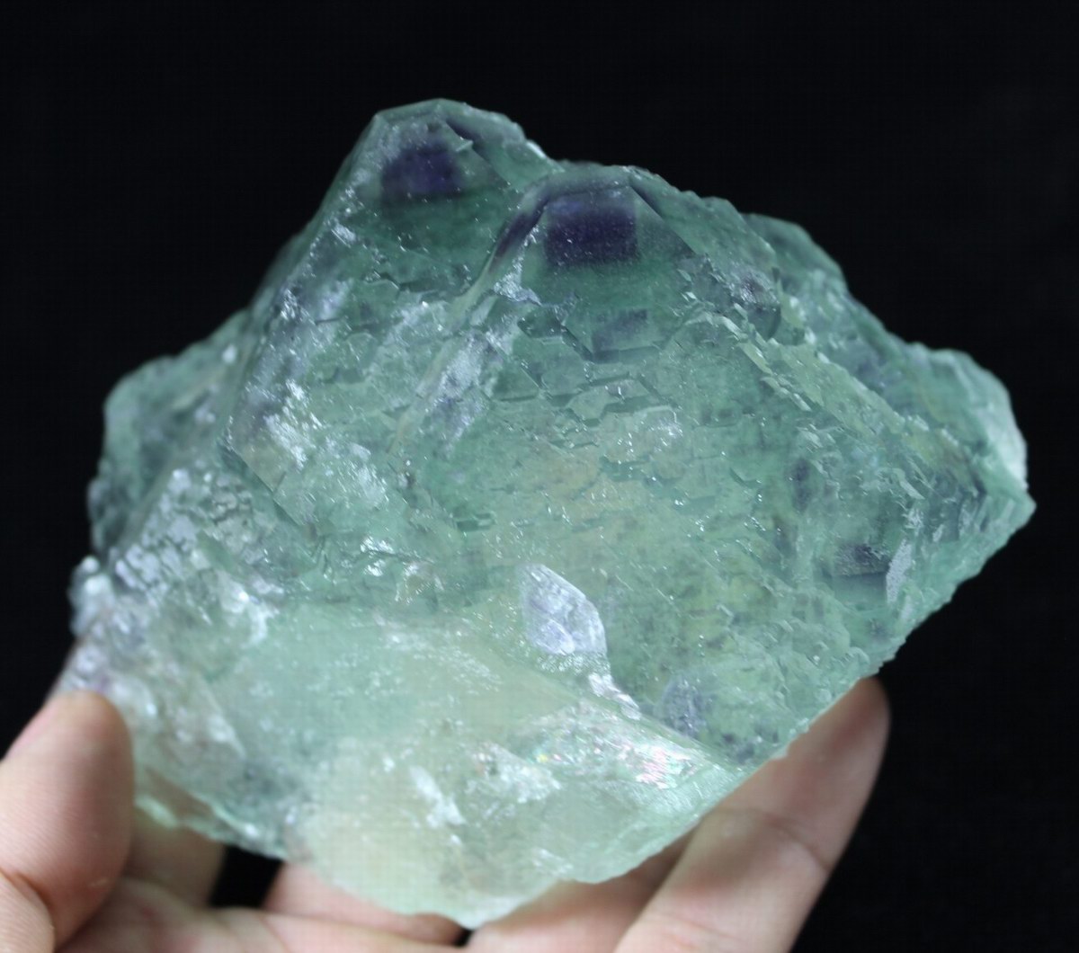 click on image to enlarge Green Fluorite with Purple Phantom CM531877 USD420.00 Size: 14.5*10*8cm Weight: 1060g Chenzhou, Hunan