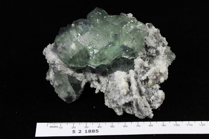 click on image to enlarge Calcite on Green Fluorite with Purple Phantom CM511884 USD168.00 Size: 10.5*9*6.5cm Weight: 660g Chenzhou, Hunan