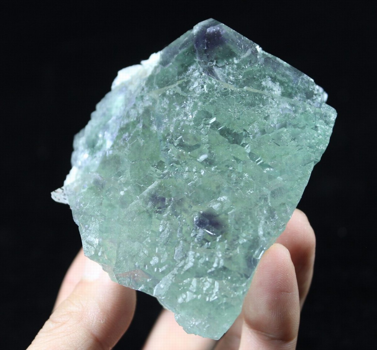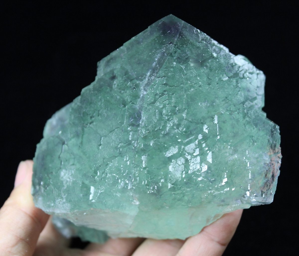 click on image to enlarge Green Fluorite with Purple Phantom CM541887 USD168.00 Size: 12.5*7.5*6.5cm Weight: 900g Chenzhou, Hunan