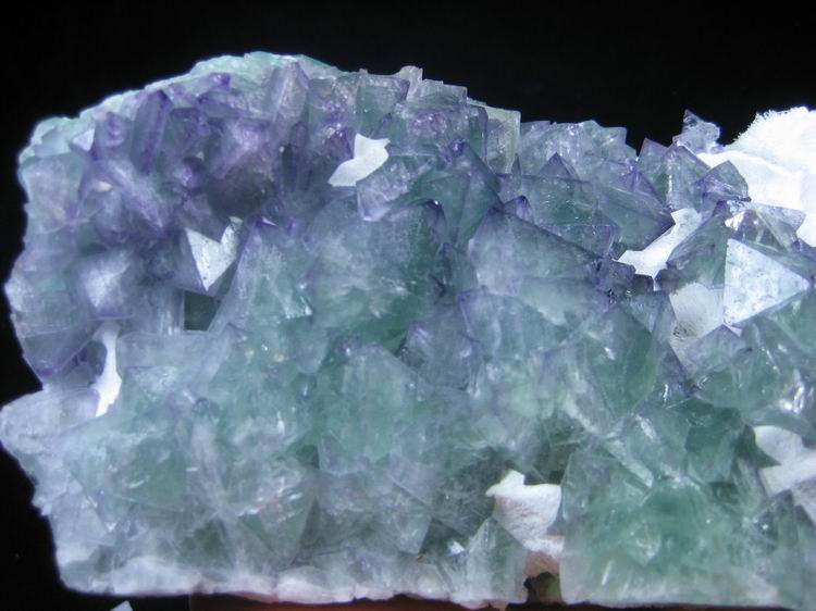 AESTHETIC clusters of octahedral Fluorite in contrastive snowy-white matrix. The crystal are translucent green and are zoned deep violet on the edges. They are the best from this location! They were the BEST pieces from what we gained during last years. As far as we know from the source, it'll be very difficult to have such EXCELLENT find in future. click on image to enlarge