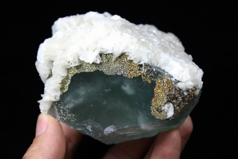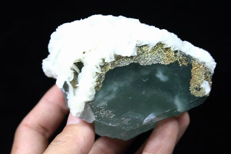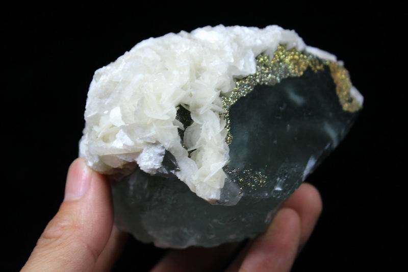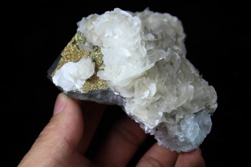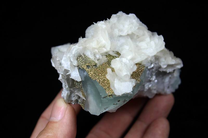 Pyrite & Calcite on Fluorite CM482970 USD98.00 Size: 9*8.5*6cm Weight:640g Chenzhou, Hunan