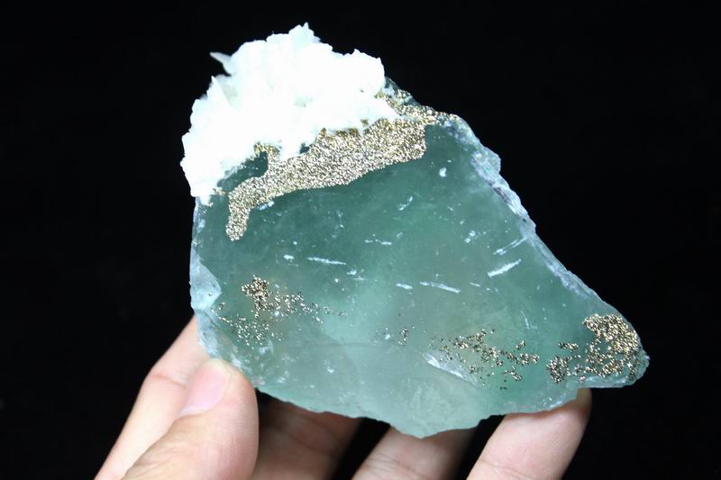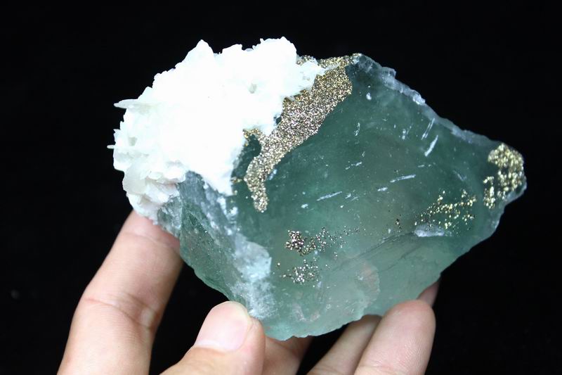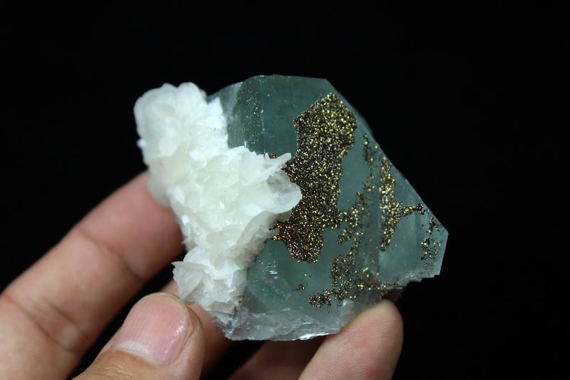 Pyrite & Calcite on Fluorite CM402972 USD85.00 Size: 9.5*7.5*5.5cm Weight:350g Chenzhou, Hunan