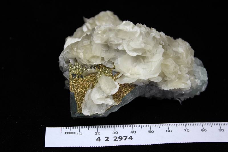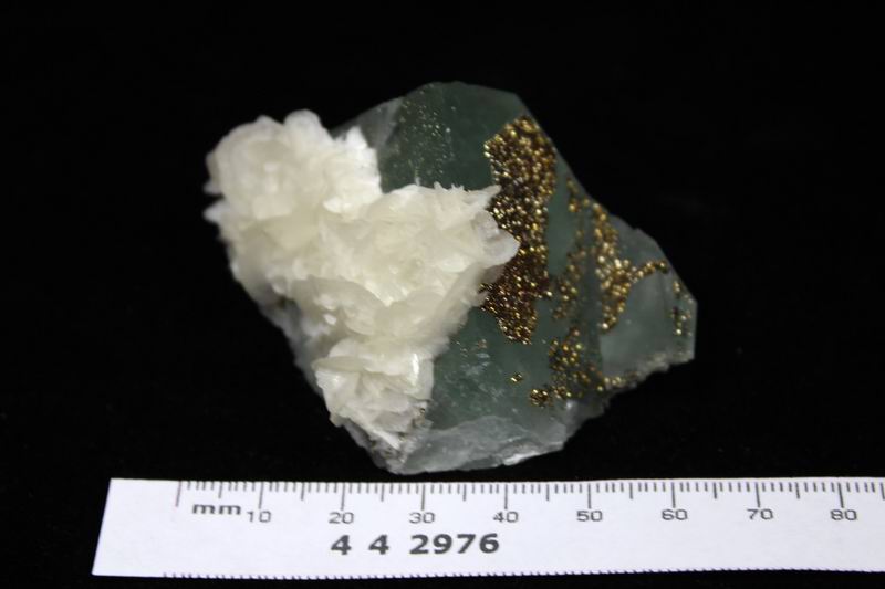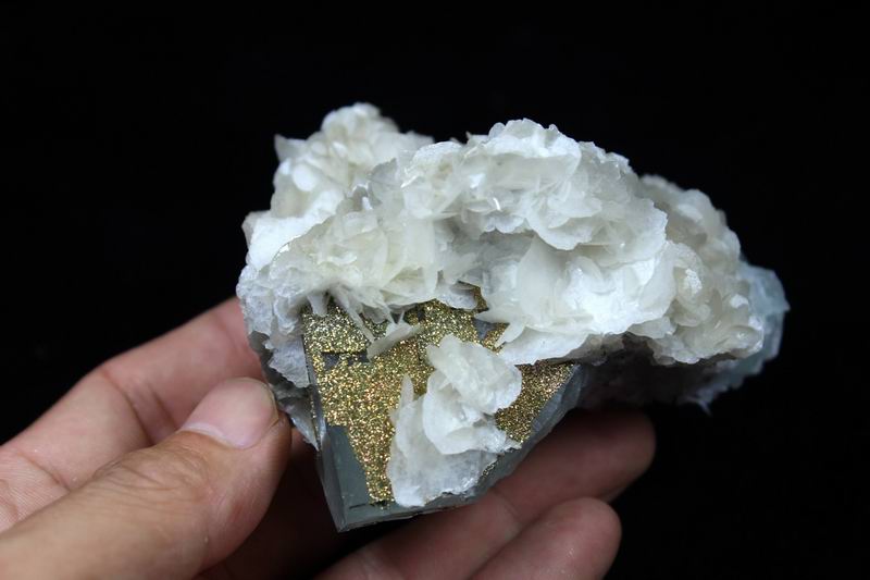 Pyrite & Calcite on Fluorite CM442976EE USD68.00 Size: 7*5*3.5cm Weight:100g Chenzhou, Hunan