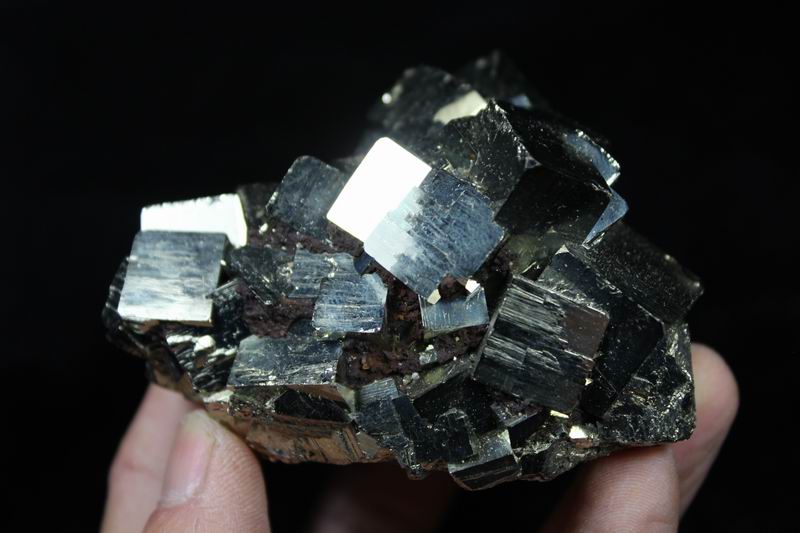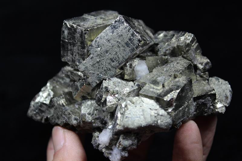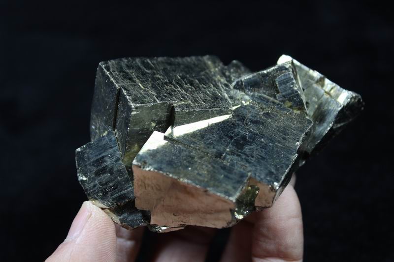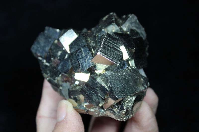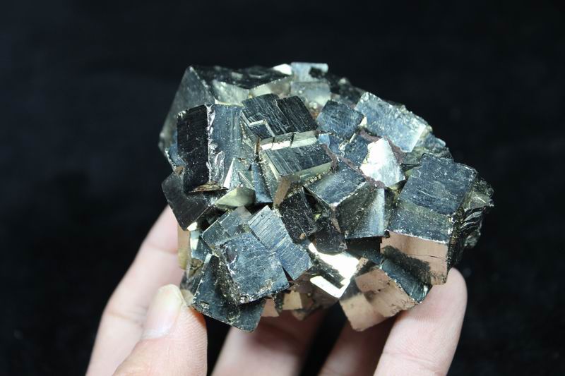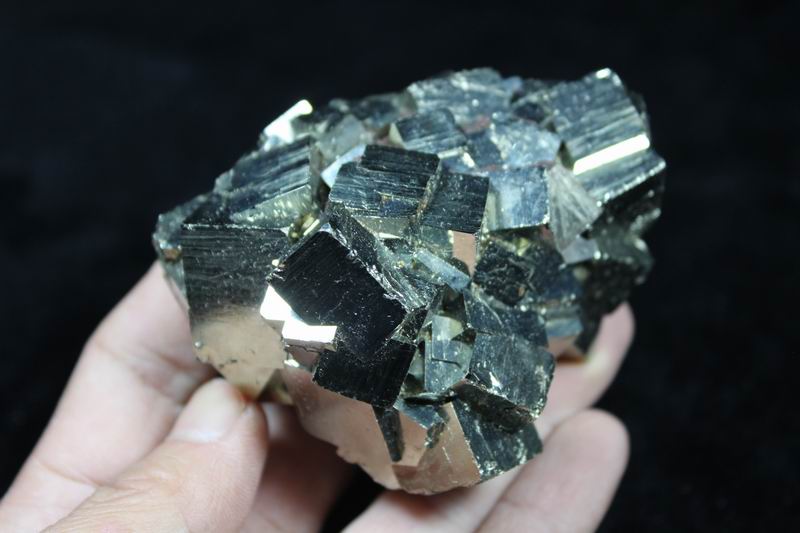 These Pyrites are of Great Gold color & Extreme mirror like Luster. Much better in person than photo. Absolutely they're eye-catching! Some single crystals are floaters. Pyrite CM560925 USD168.00 Size: 6.3*5.5*5.2cm Weight: 660g Shangbao, Hunan