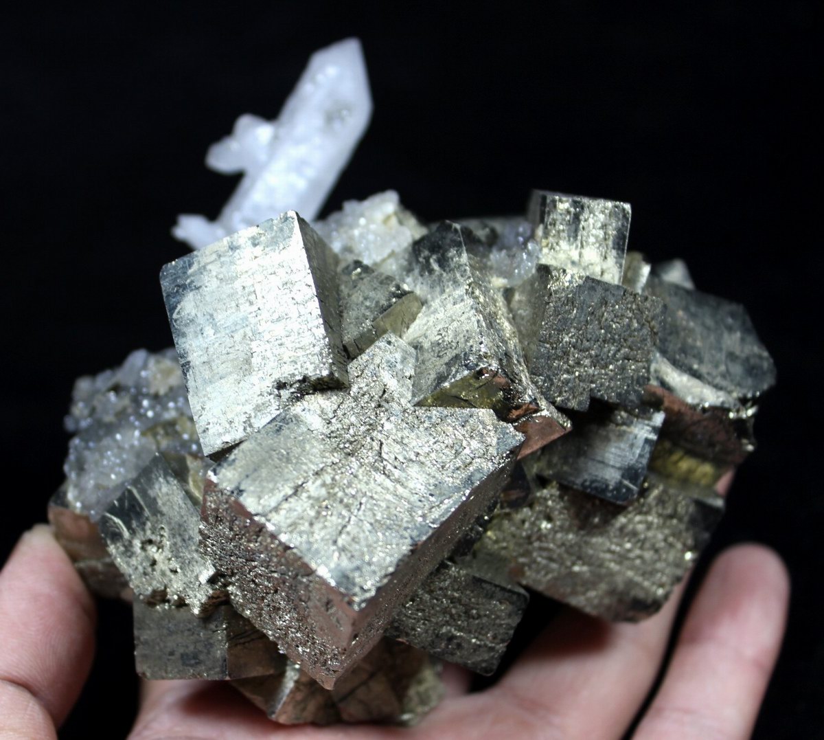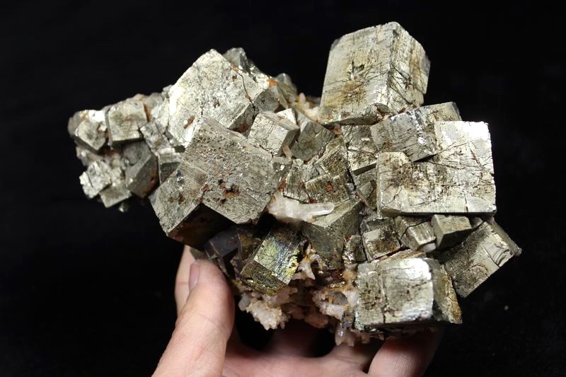 These Pyrites are of Great Gold color & Extreme mirror like Luster. Much better in person than photo. Absolutely they're eye-catching! Some single crystals are floaters. click on image to enlarge Pyrite & Quartz CM560907 USD418.00 Size: 10.5*9.5*6.5cm Weight: 1165g Shangbao, Hunan