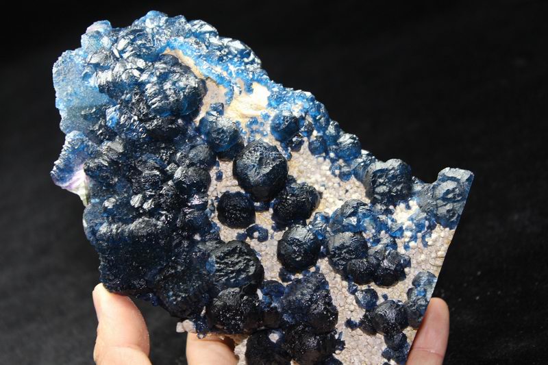 click on image to enlarge Blue Fluorite on Quartz CM540103 USD 670.00 Size: 11*10.5*7.5 cm, Weight: 660 g Chifeng, Inner Mongolia
