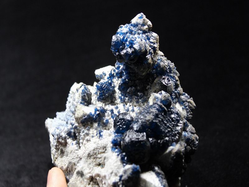 click on image to enlarge < On back side, the Blue Fluorite crystals are partly covered by very tiny Golden Pyrite crystals. > Blue Fluorite on Quartz CM550104 USD 585.00 Size: 11*6.5*8.5 cm, Weight: 375 g Chifeng, Inner Mongolia