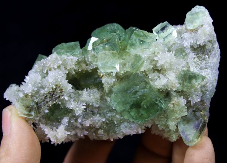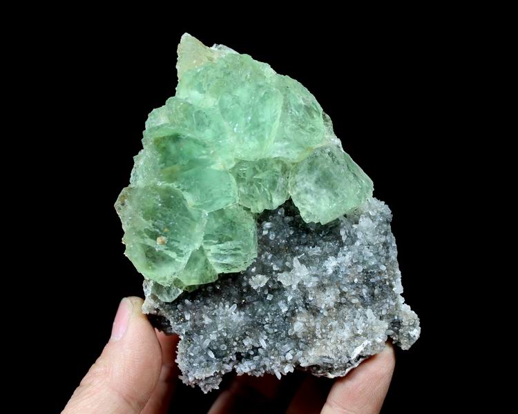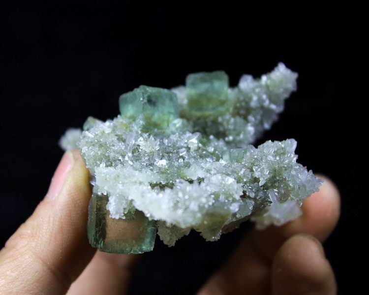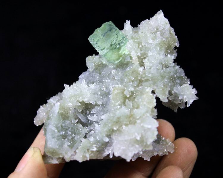 Green Fluorite on Quartz CM474571EJ USD68.00 Size: 8.5*6.5*4cm Weight: 110g Fujian, China