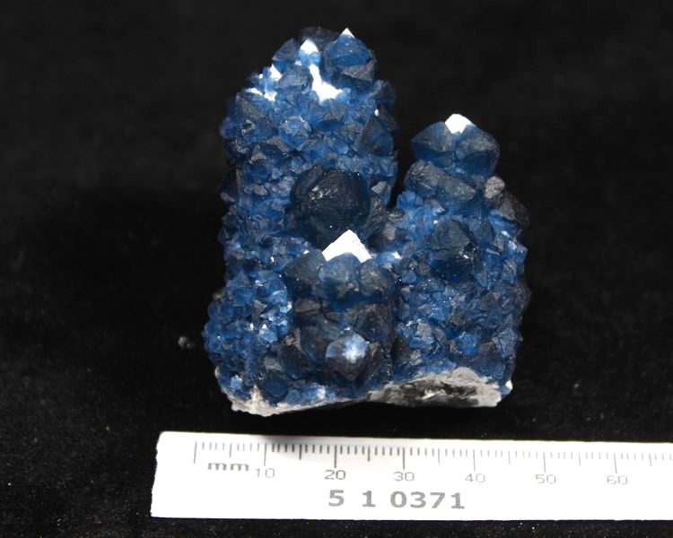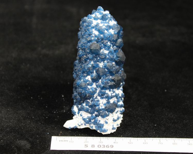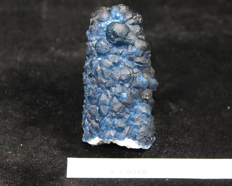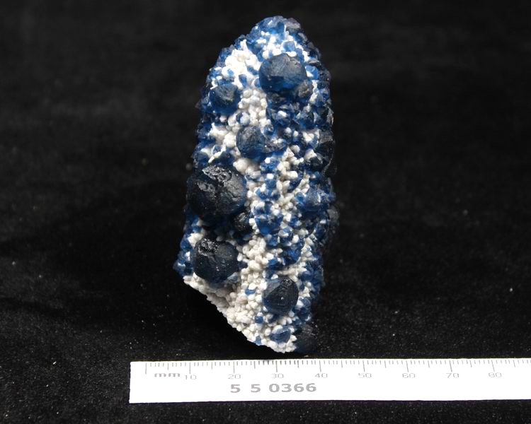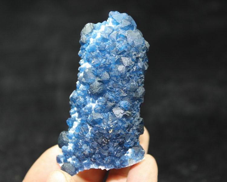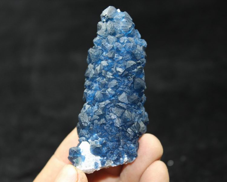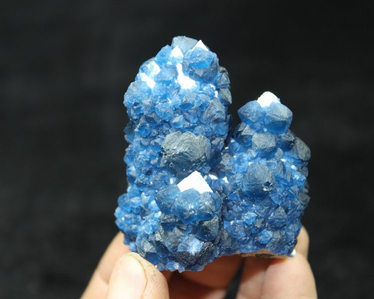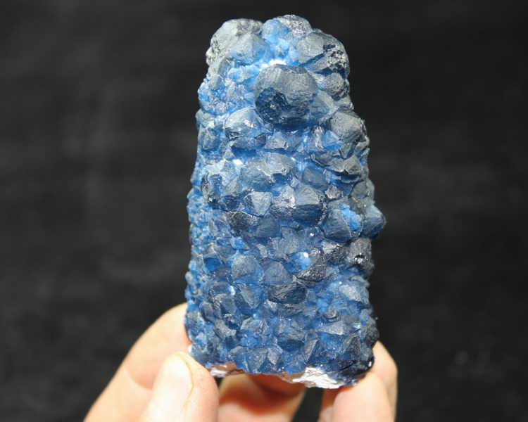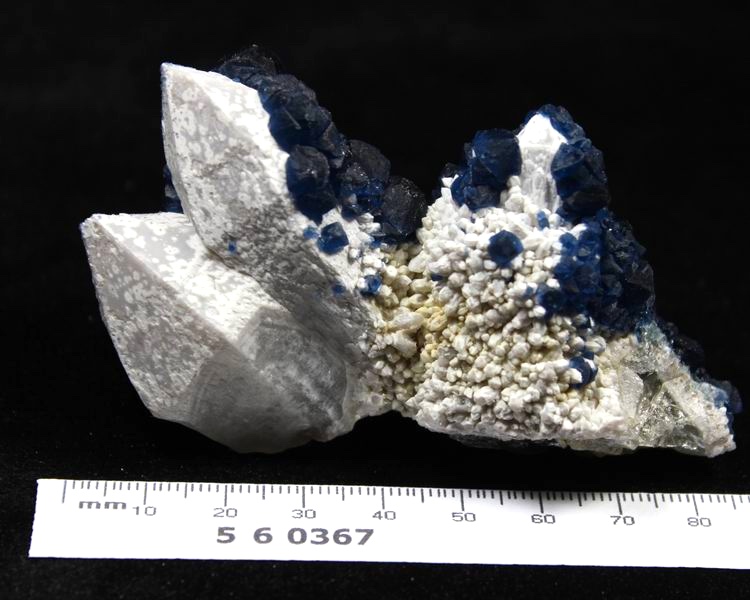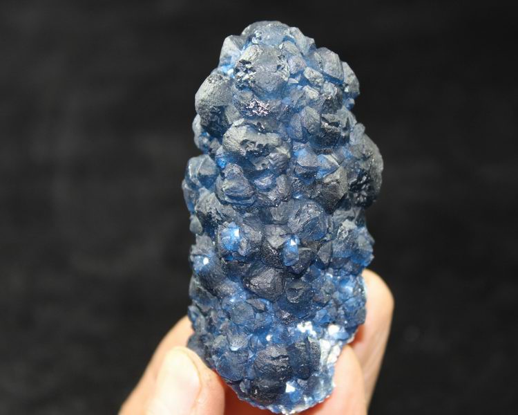 Vivid deep blue Fluorite crystals, with shades that vary between indigo and navy blue on a matrix of white crystallized Quartz. The smaller Fluorite crystals are neatly cubic, with small dodecahedron bevels and with very well defined curvatures on faces and edges, while the largest ones are unusually strongly rounded, a very uncommon shape for Fluorite. This shape is due to the balanced forms of the cube, polycrystalline and deeply edged, and the smooth dodecahedral faces, both dodecahedron and cube have curved faces and edges. Completely different from other, previous finds in Huanggang, it is a kind of dream for lovers of unusual crystallography.