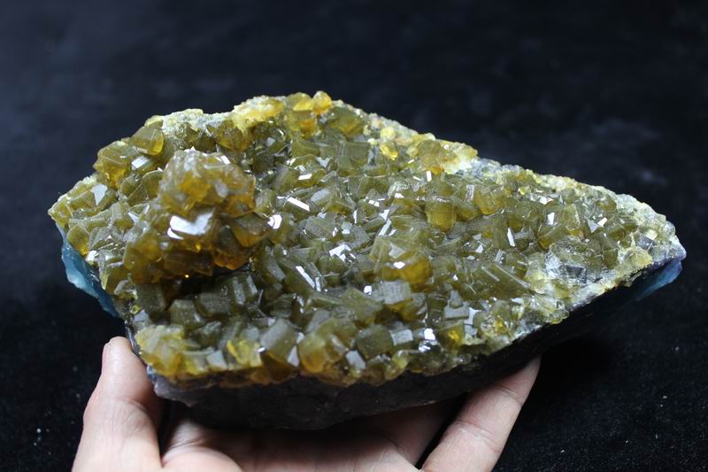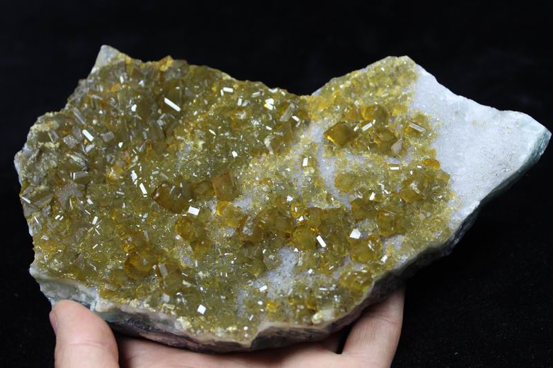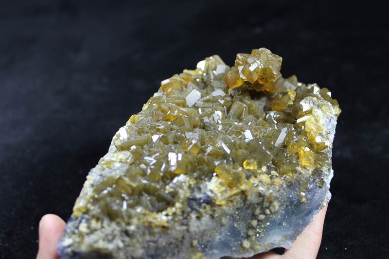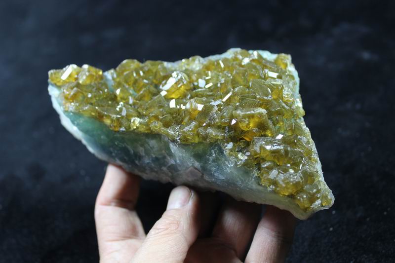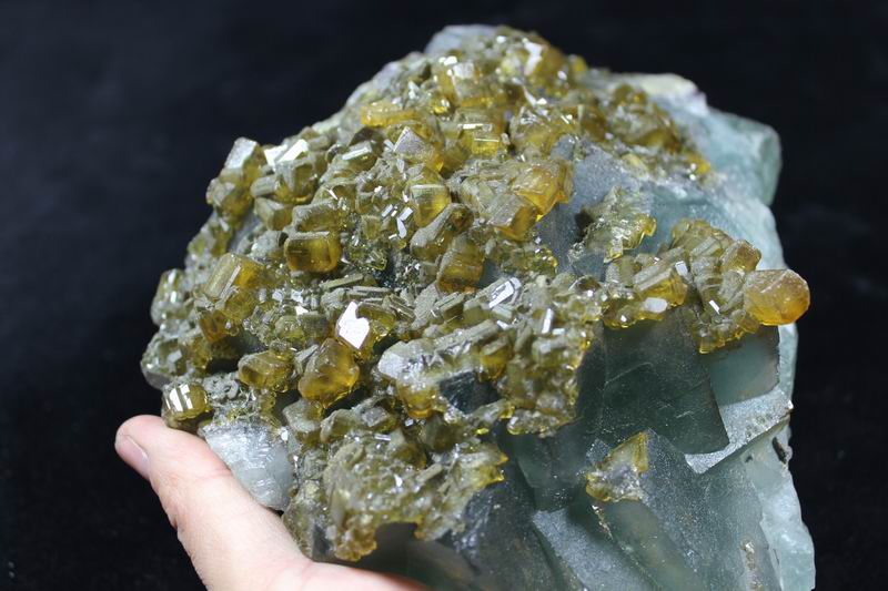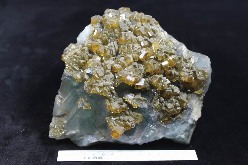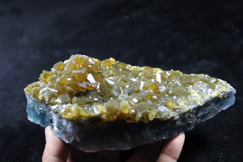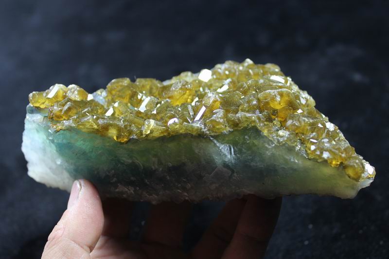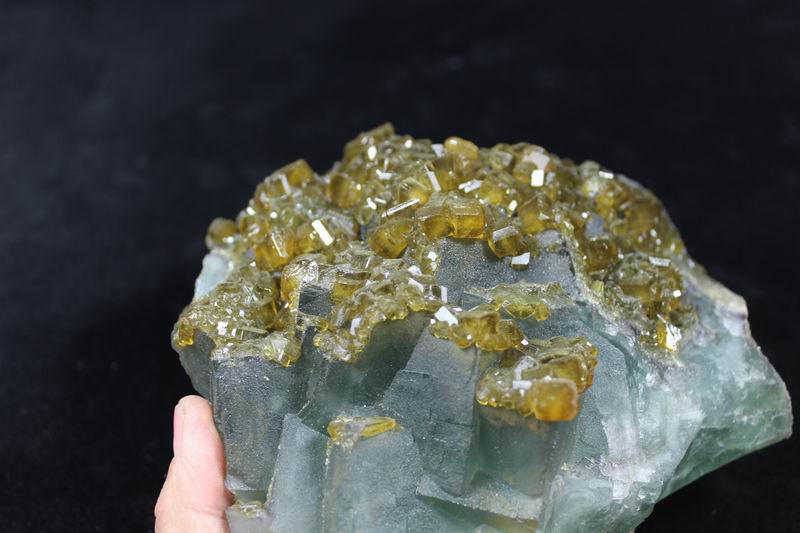Barite(with Pyrite inclusion) & Pyrite on Fluorite CM530409S USD118.00 Size: 19*11*3cm Weight: 1110g Xiefang, Jiangxi