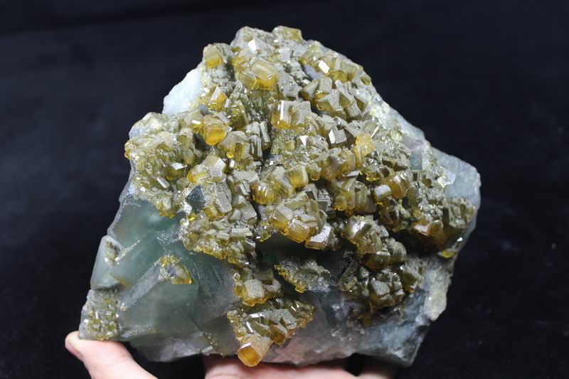 Barite(with Pyrite inclusion) & Pyrite on Fluorite CM500406 USD118.00 Size: 16.5*16*8cm Weight: 2815g Xiefang, Jiangxi