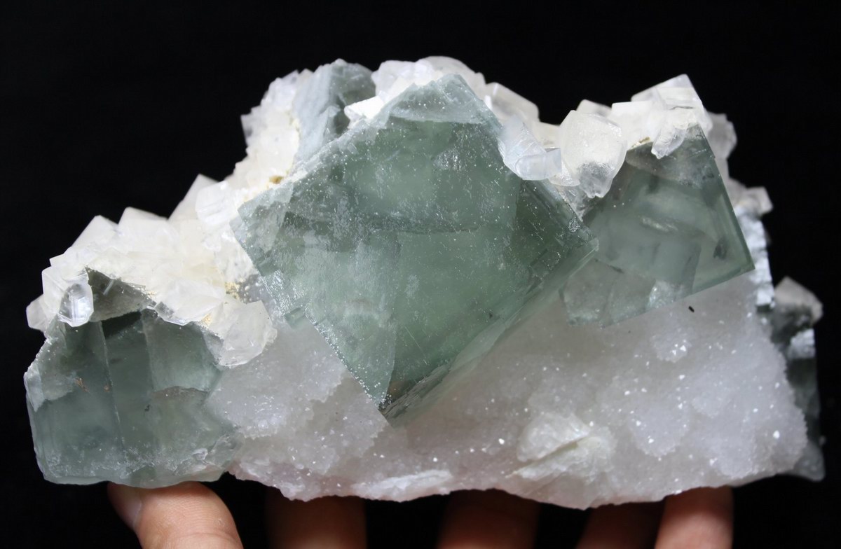 click on image to enlarge Calcite on Green Fluorite CM581296EE USD250.00 Size: 17*10*8.5cm Weight: 1445g Chenzhou, Hunan
