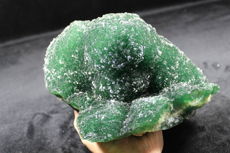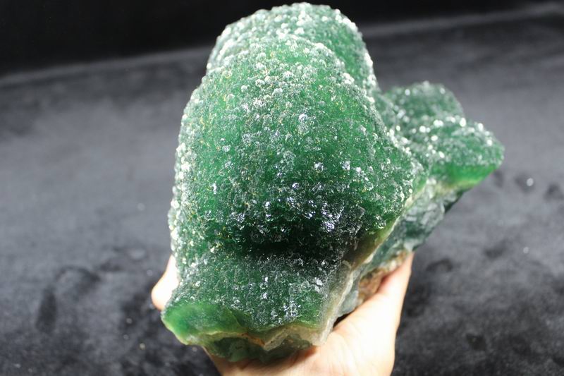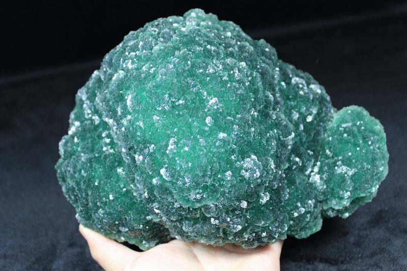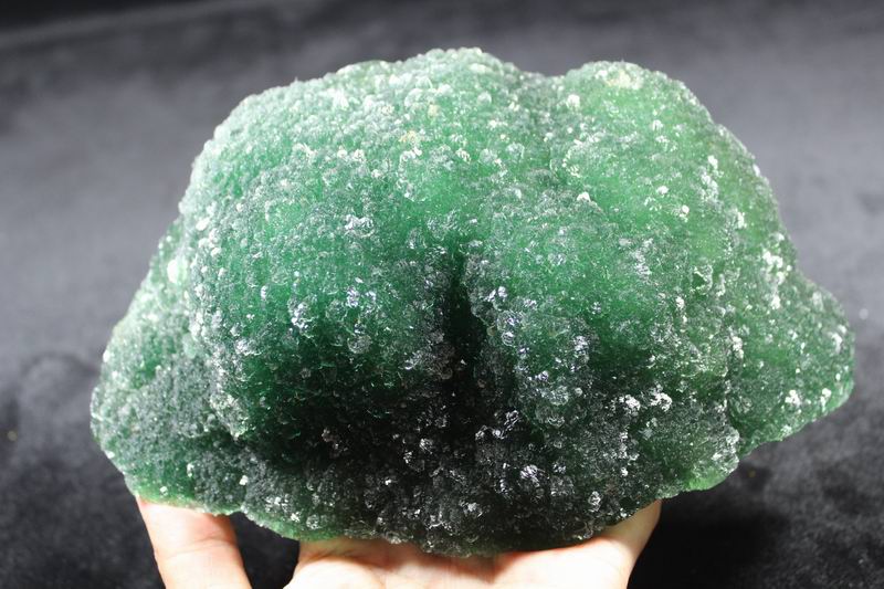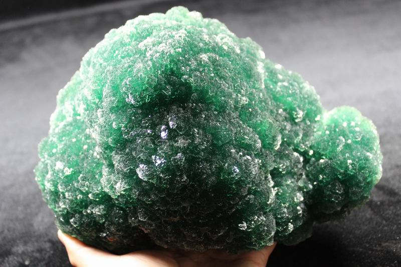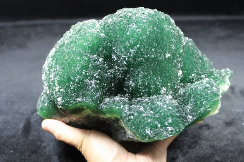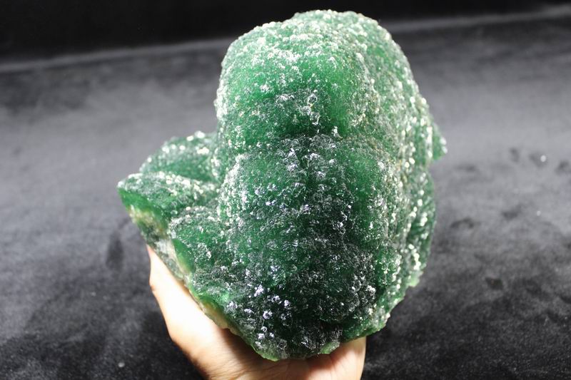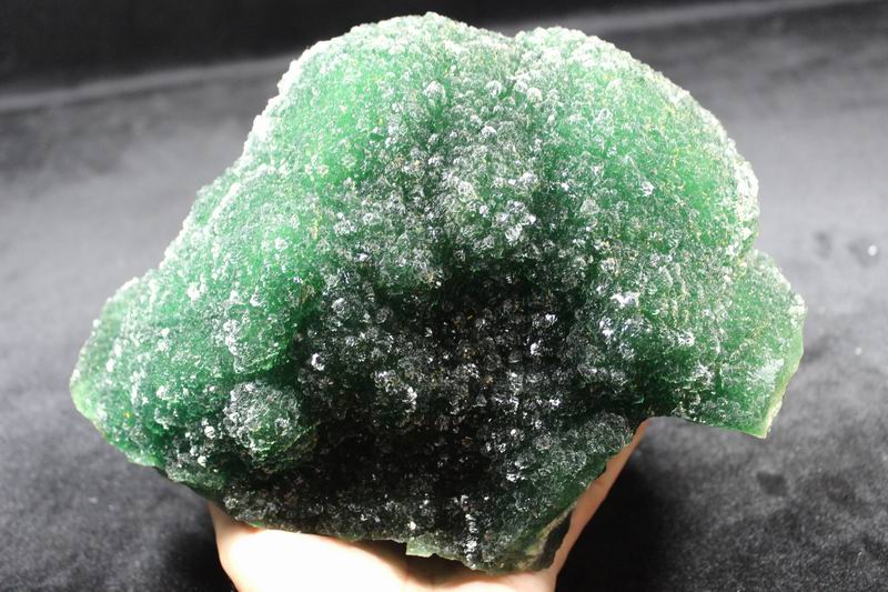click on image to enlarge The Fluorite is of VIVID APPLE GREEN color. It's of the best color. We only get few such pieces from hundred pieces. Apple Green Fluorite CM541418E USD585.00 Size: 22.5*16*8.5cm Weight: 3330g De'an, Jiangxi