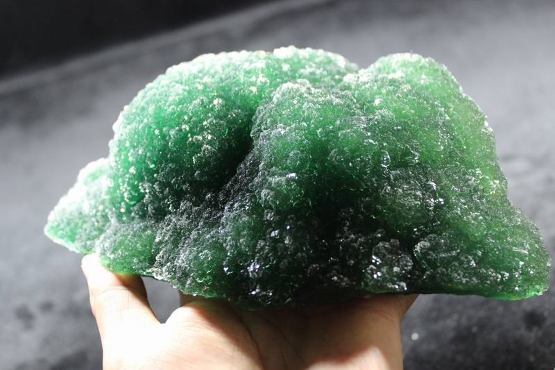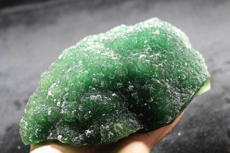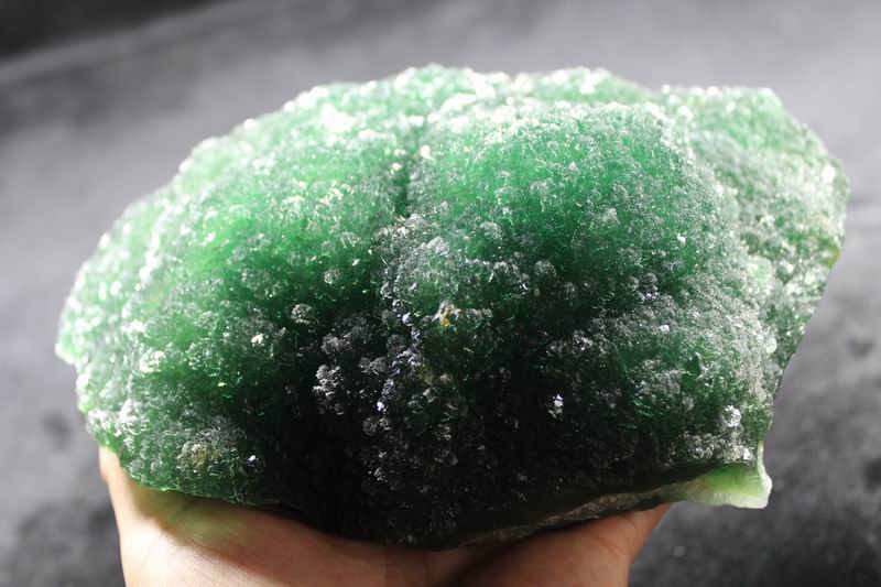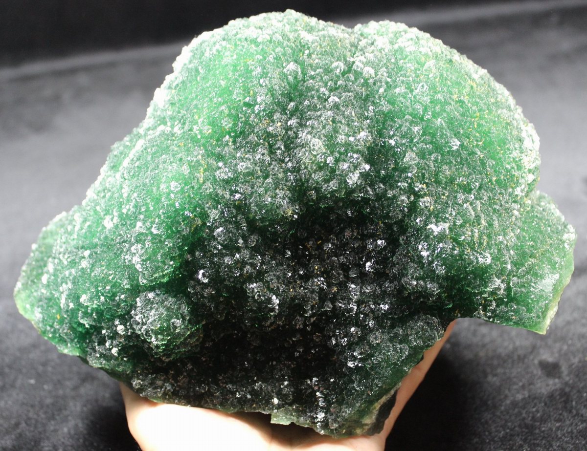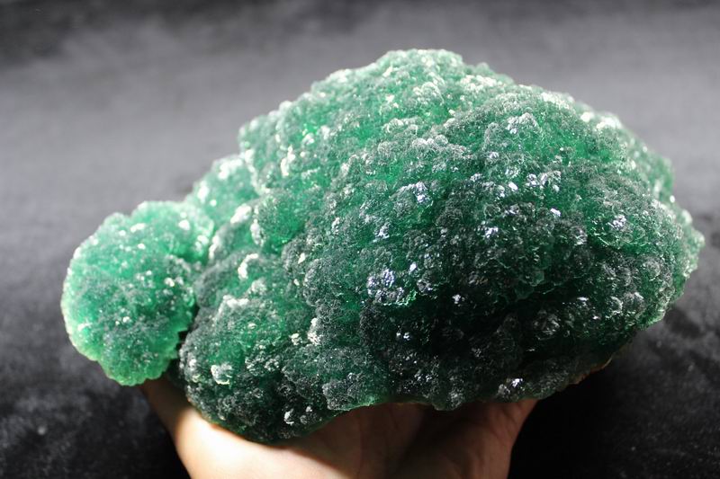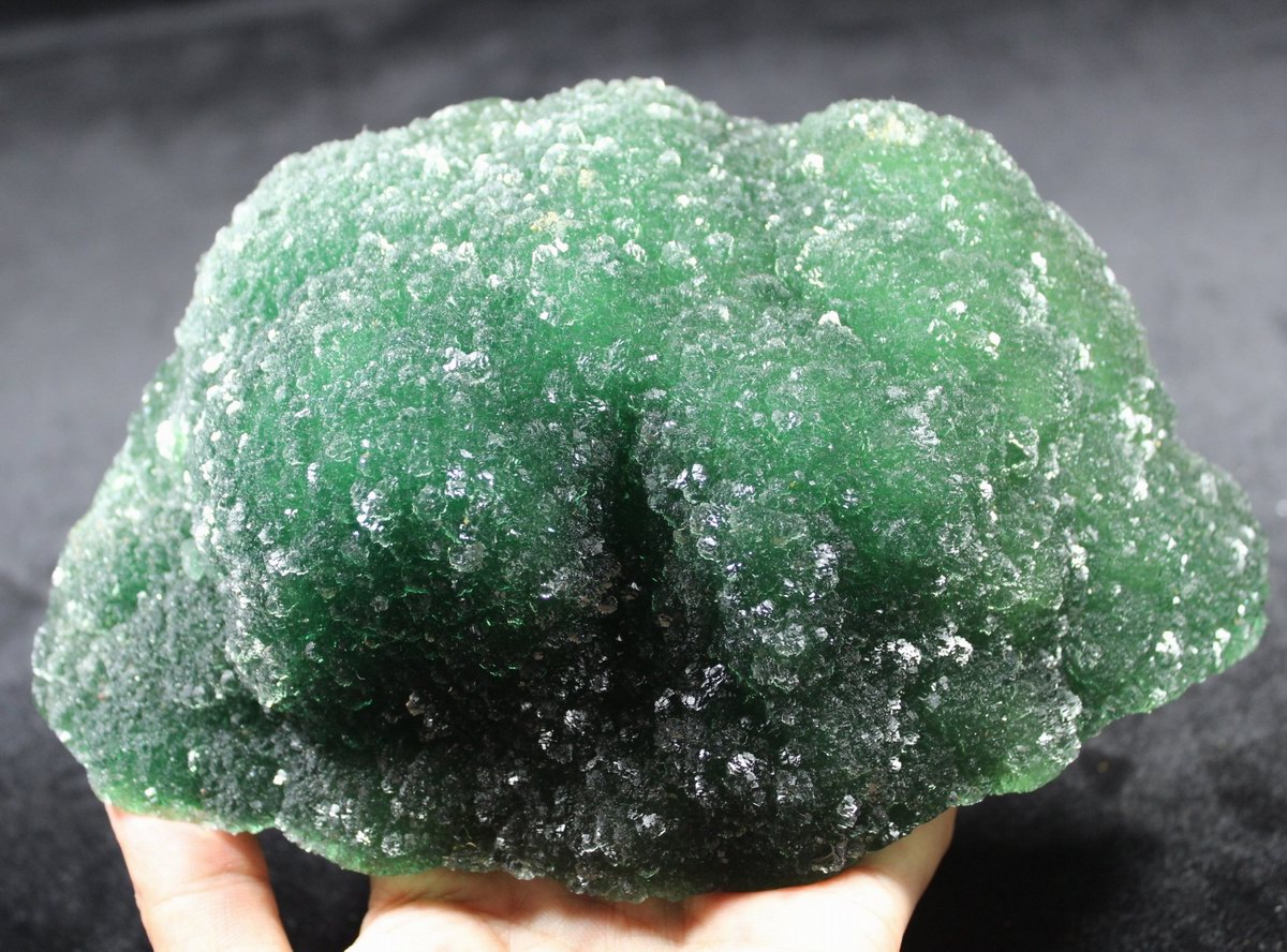 click on image to enlarge The Fluorite is of VIVID APPLE GREEN color. It's of the best color. We only get few such pieces from hundred pieces. Apple Green Fluorite CM541418E USD585.00 Size: 22.5*16*8.5cm Weight: 3330g De'an, Jiangxi