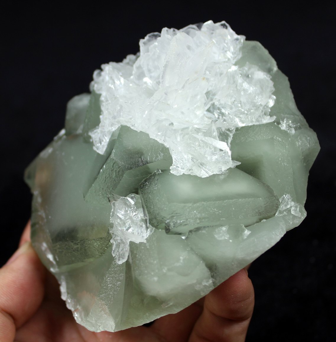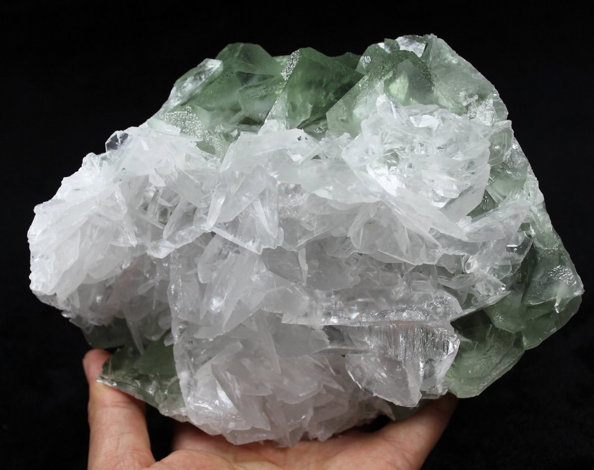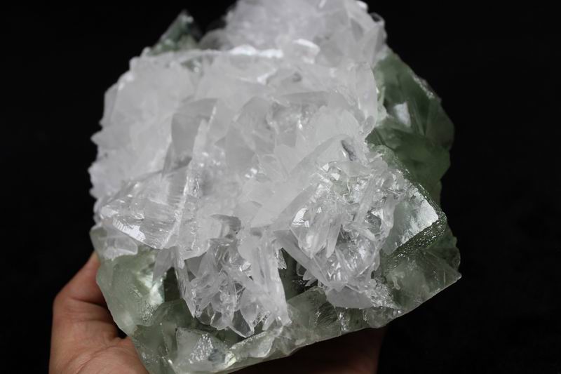 click on image to enlarge Clear & Transparent Calcite on Green Fluorite CM511433S USD335.00 Size: 17*13.5*6cm Weight: 1530g Chenzhou, Hunan