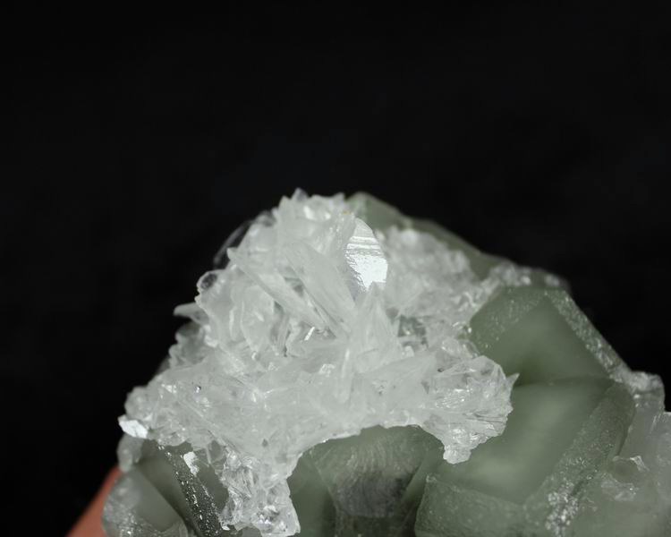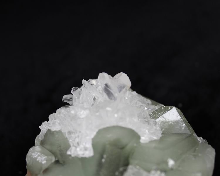 click on image to enlarge Clear & Transparent Calcite on Green Fluorite CM521434E USD185.00 Size: 10*9*5cm Weight: 505g DeĄŻan, Jiangxi