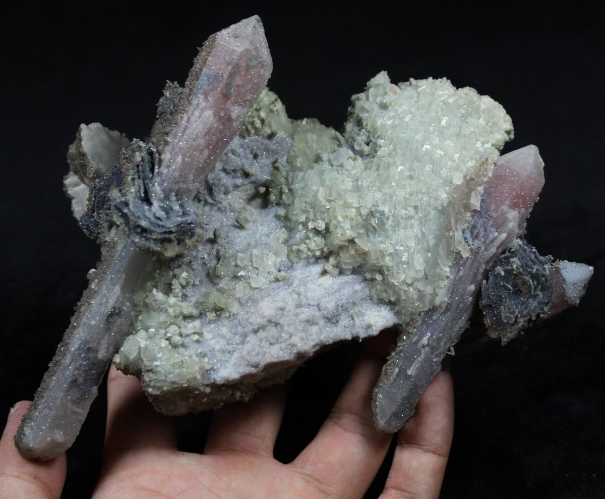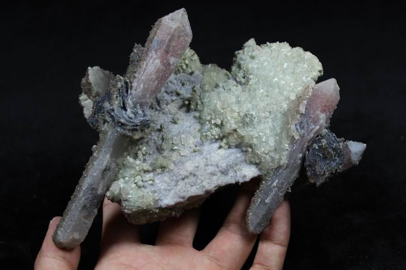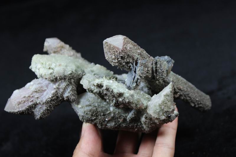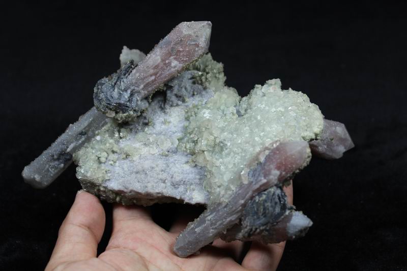 click on image to enlarge Quartz with Hematite, Calcite CM541472 Hold Size: 16*9.5*7.5cm Weight: 585g Chifeng, Inner Mongolia