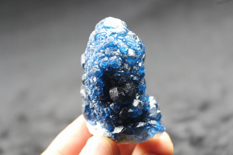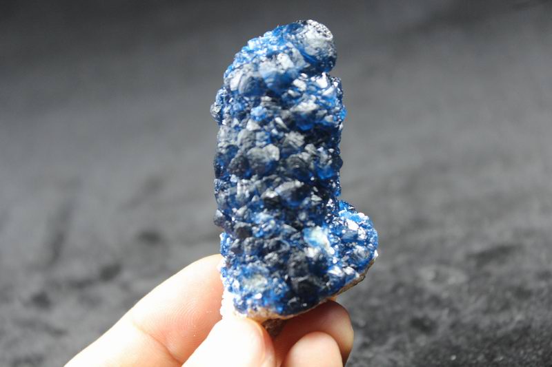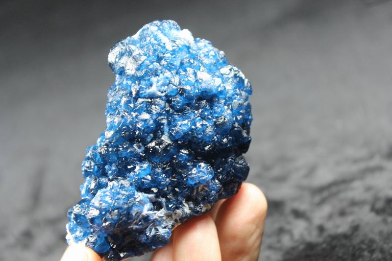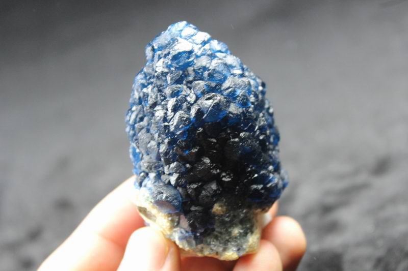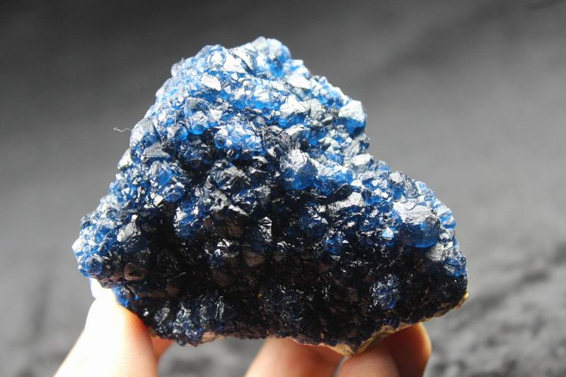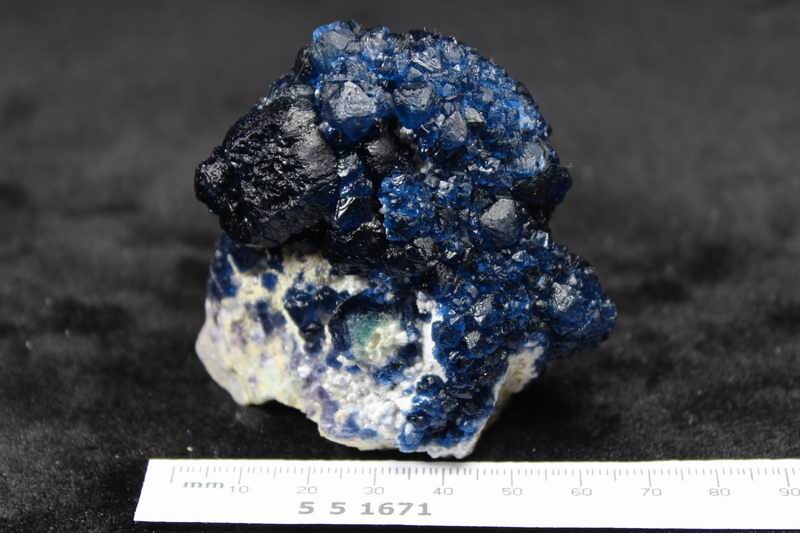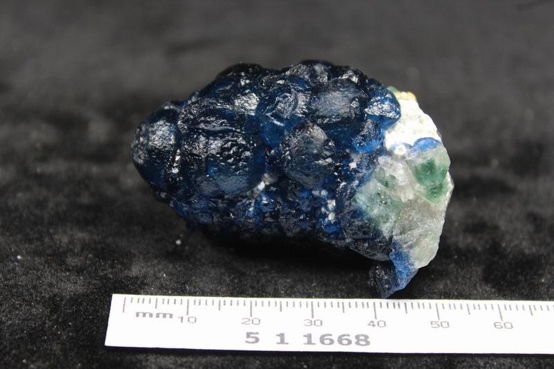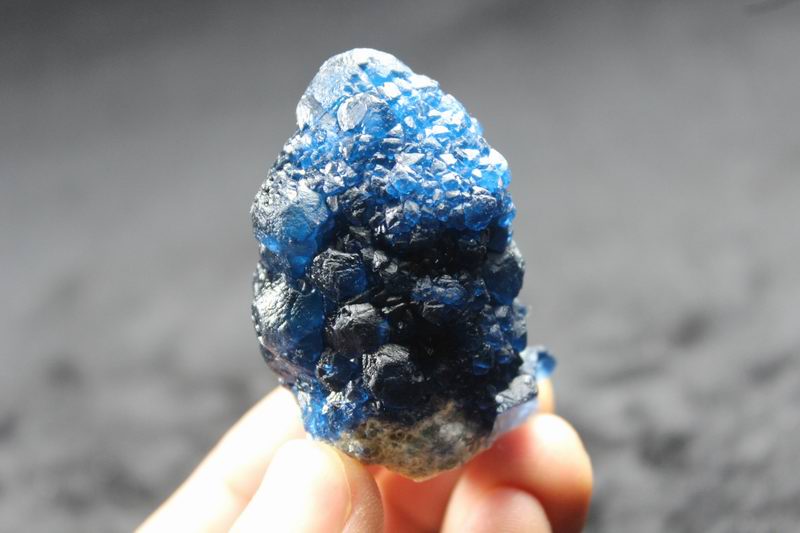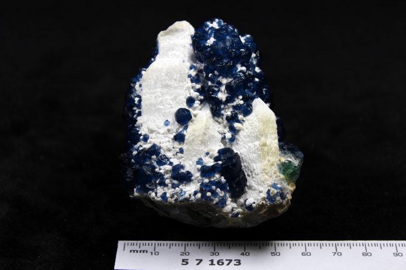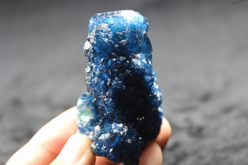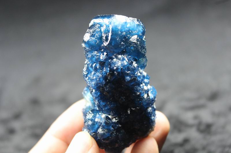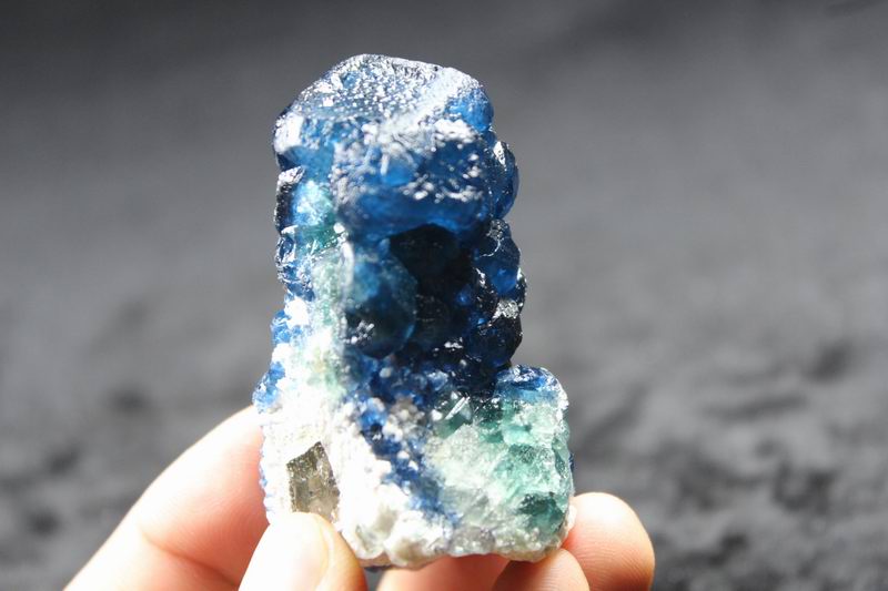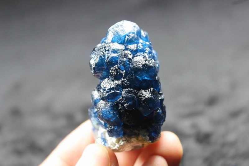 Vivid deep blue Fluorite crystals, with shades that vary between indigo and navy blue on a matrix of white crystallized Quartz. The smaller Fluorite crystals are neatly cubic, with small dodecahedron bevels and with very well defined curvatures on faces and edges, while the largest ones are unusually strongly rounded, a very uncommon shape for Fluorite. This shape is due to the balanced forms of the cube, polycrystalline and deeply edged, and the smooth dodecahedral faces, both dodecahedron and cube have curved faces and edges. Completely different from other, previous finds in Huanggang, it is a kind of dream for lovers of unusual crystallography.
