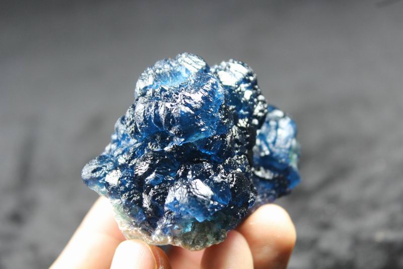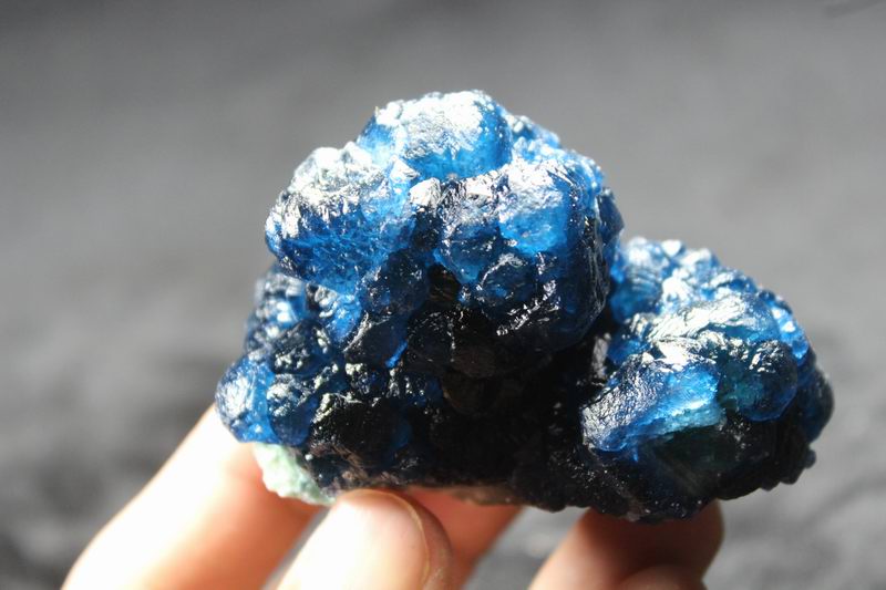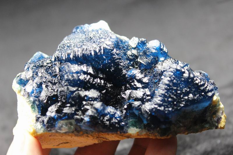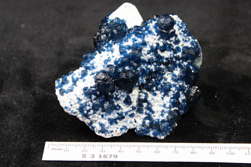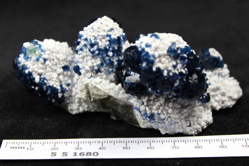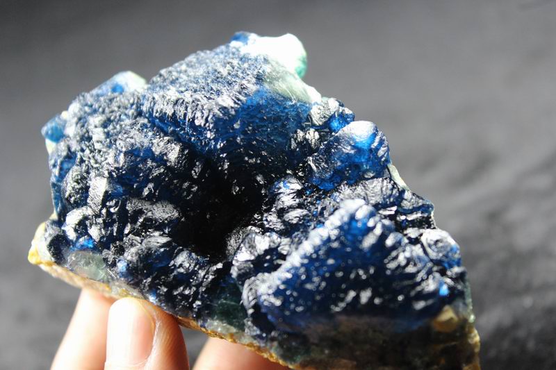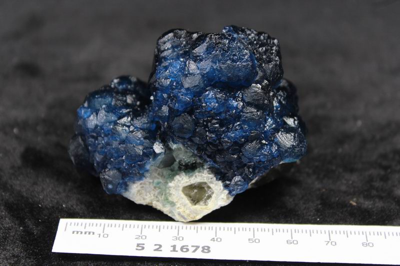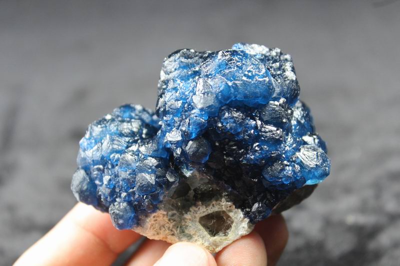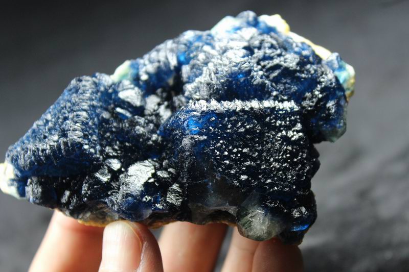 Vivid deep blue Fluorite crystals, with shades that vary between indigo and navy blue on a matrix of white crystallized Quartz. The smaller Fluorite crystals are neatly cubic, with small dodecahedron bevels and with very well defined curvatures on faces and edges, while the largest ones are unusually strongly rounded, a very uncommon shape for Fluorite. This shape is due to the balanced forms of the cube, polycrystalline and deeply edged, and the smooth dodecahedral faces, both dodecahedron and cube have curved faces and edges. Completely different from other, previous finds in Huanggang, it is a kind of dream for lovers of unusual crystallography.