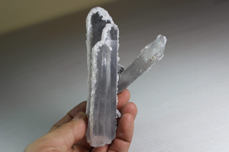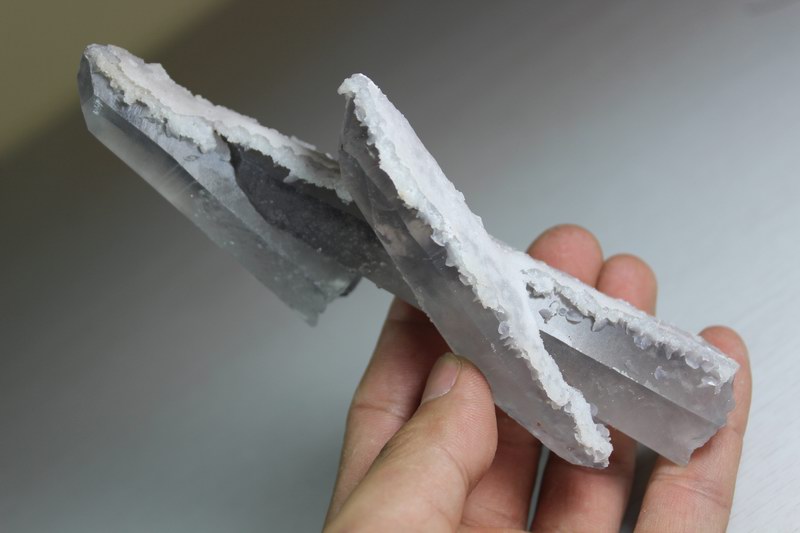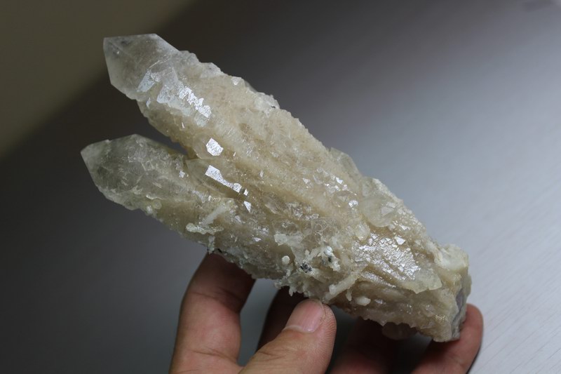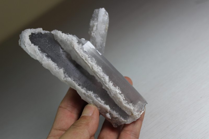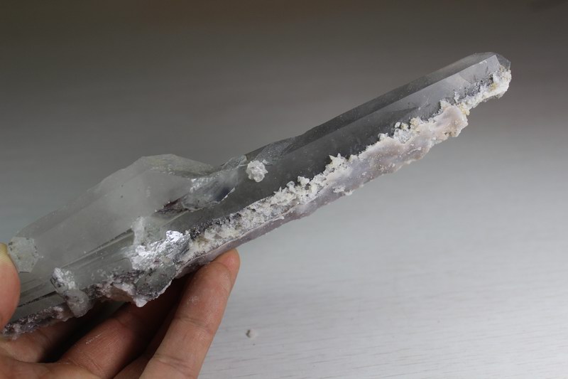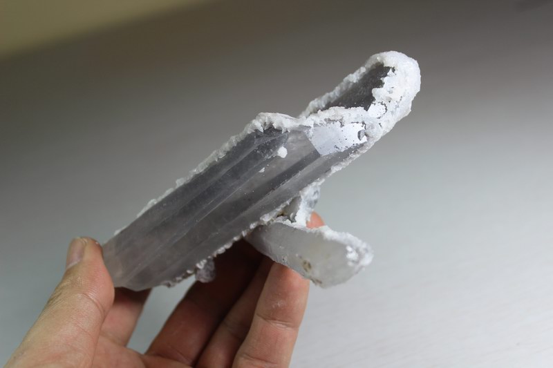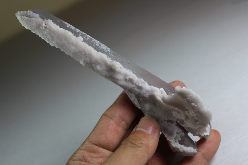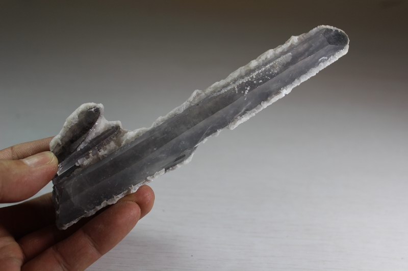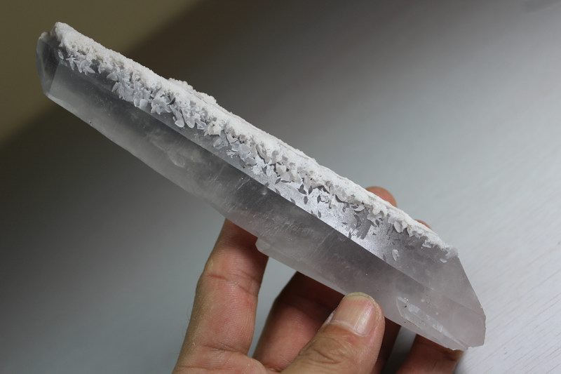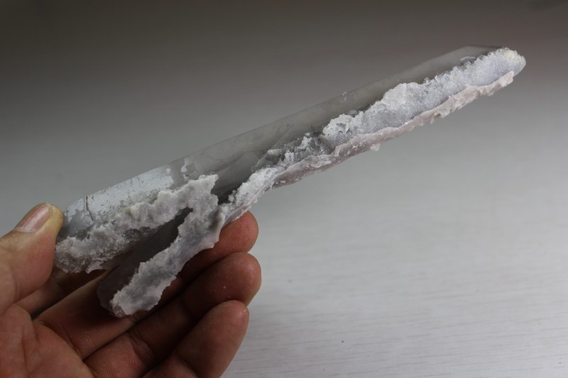 Calcite (covered by Quartz) on Quartz CM551725 USD58.00 Size: 17.5*3.8*2.8cm Weight: 202g Chifeng, Inner Mongolia