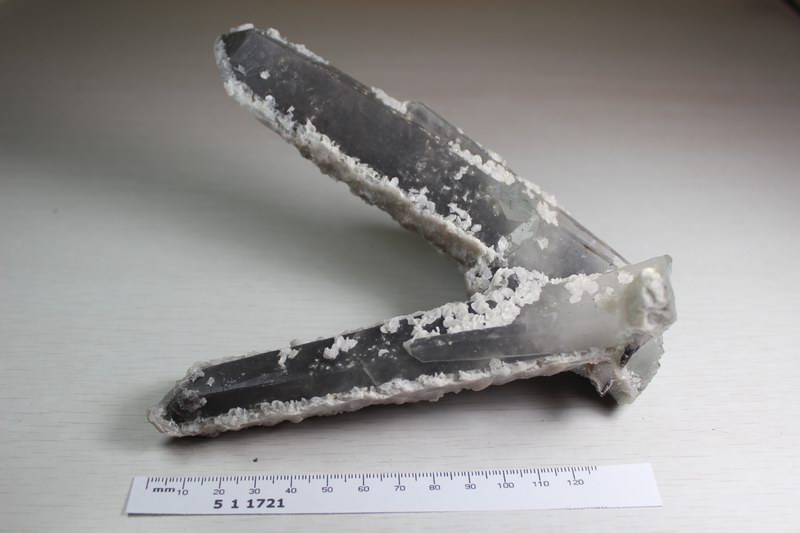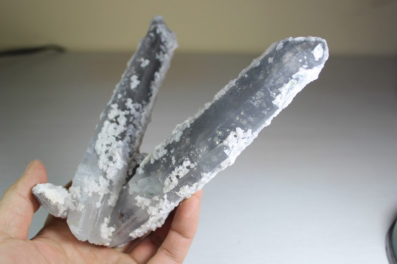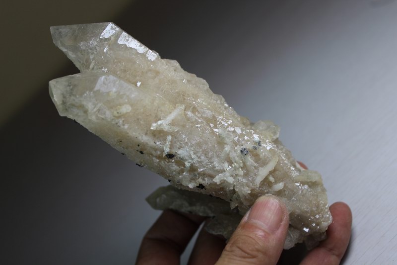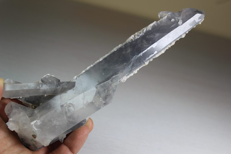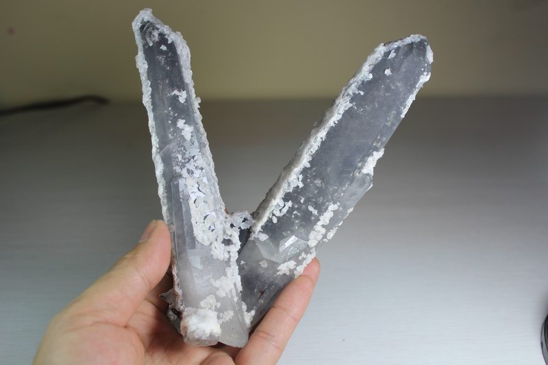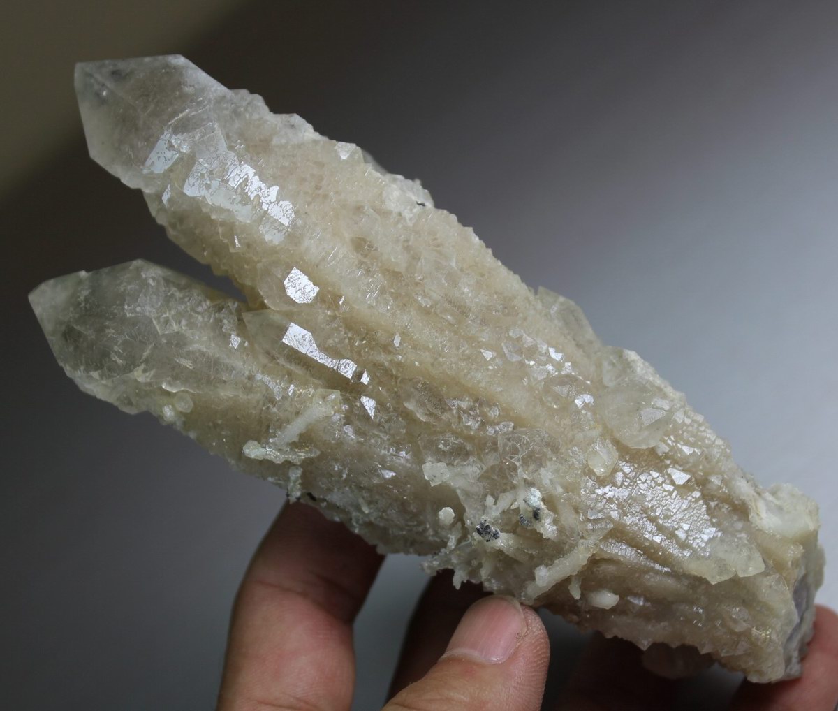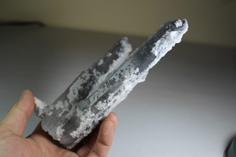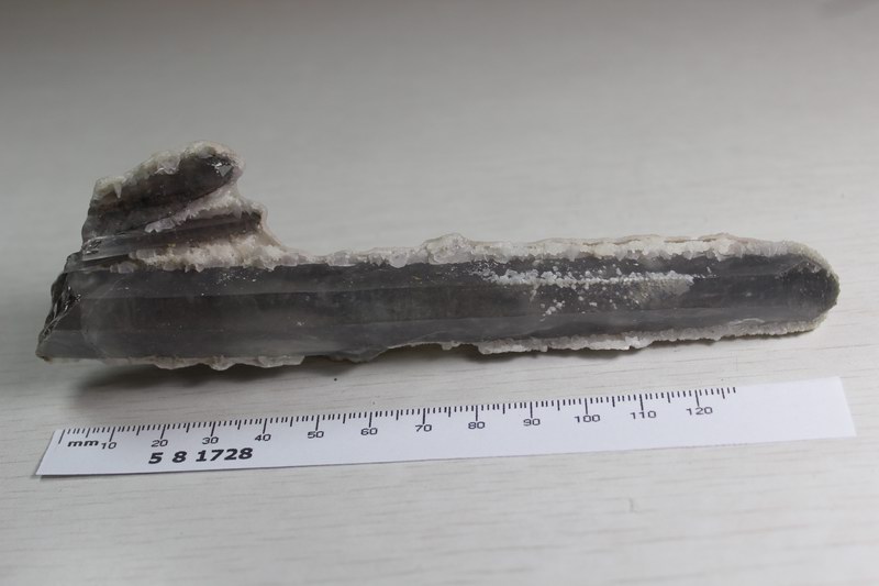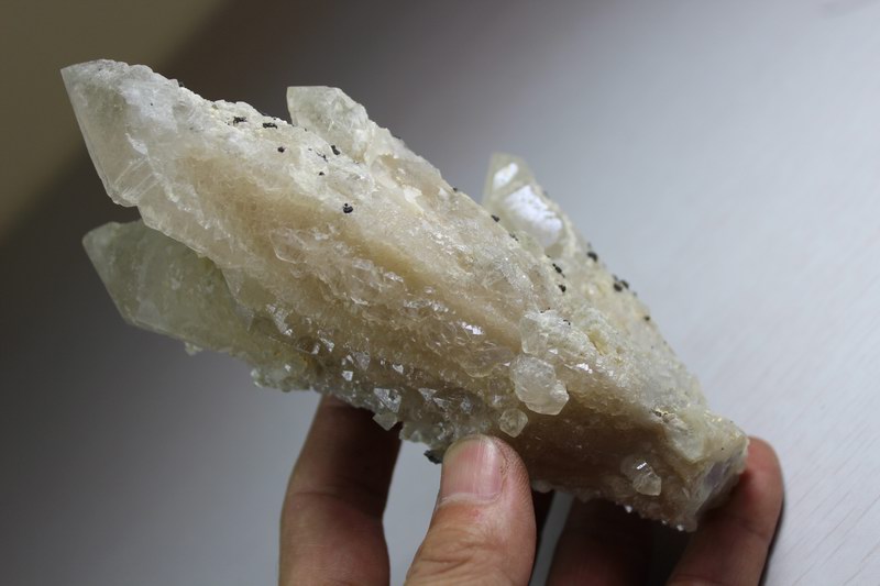 Calcite (covered by Quartz) on Quartz CM551725 USD58.00 Size: 17.5*3.8*2.8cm Weight: 202g Chifeng, Inner Mongolia