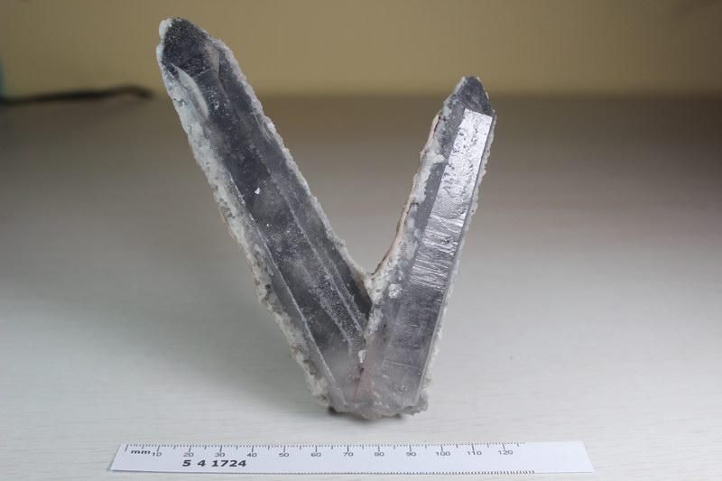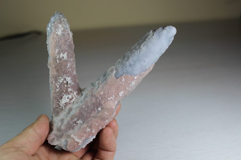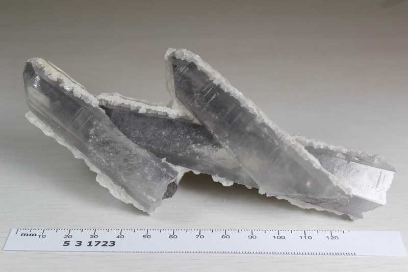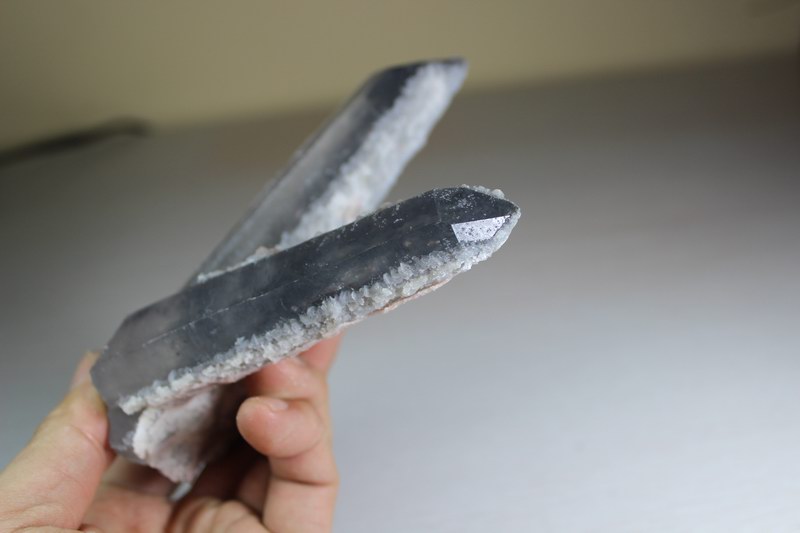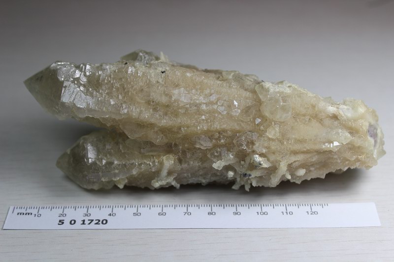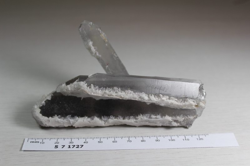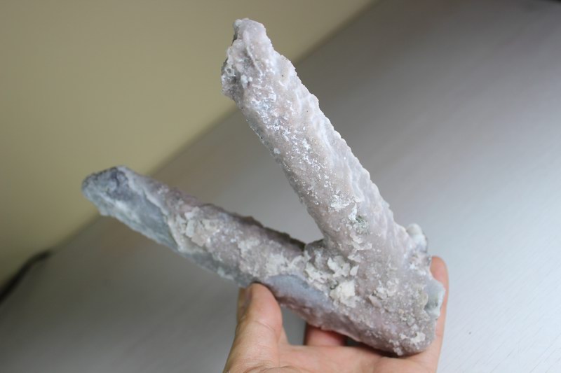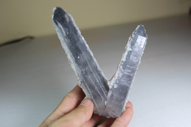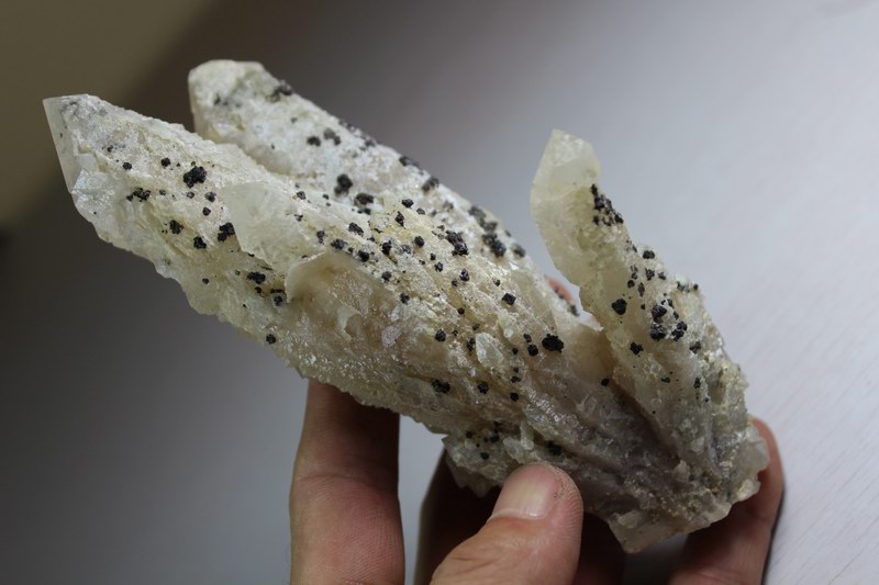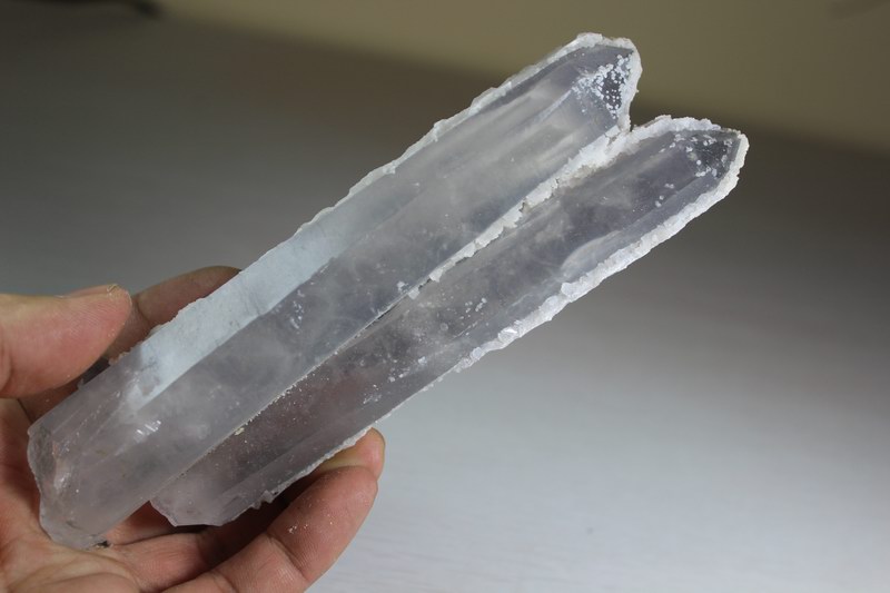 Calcite (covered by Quartz) on Quartz CM551725 USD58.00 Size: 17.5*3.8*2.8cm Weight: 202g Chifeng, Inner Mongolia