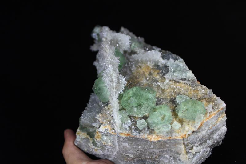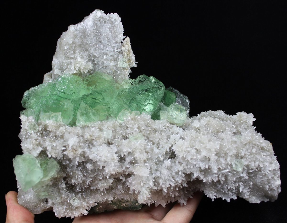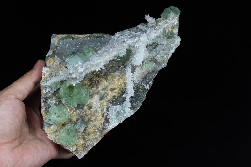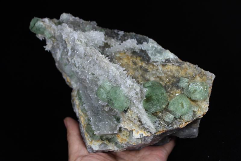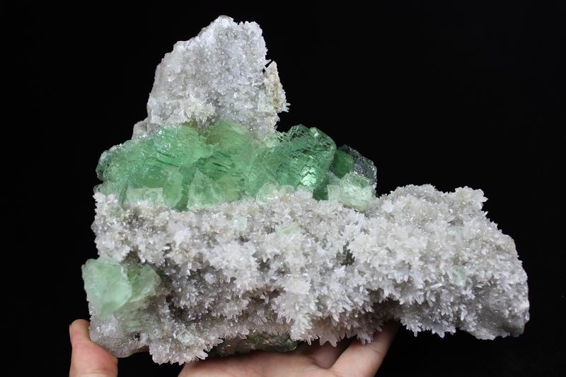 click on image to enlarge Green Fluorite on Quartz CM511758 USD498.00 Size: 25*20*12cm Weight: 3170g Fujian, China