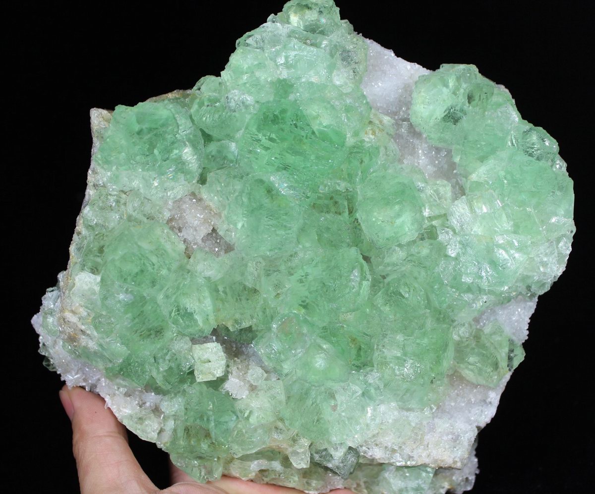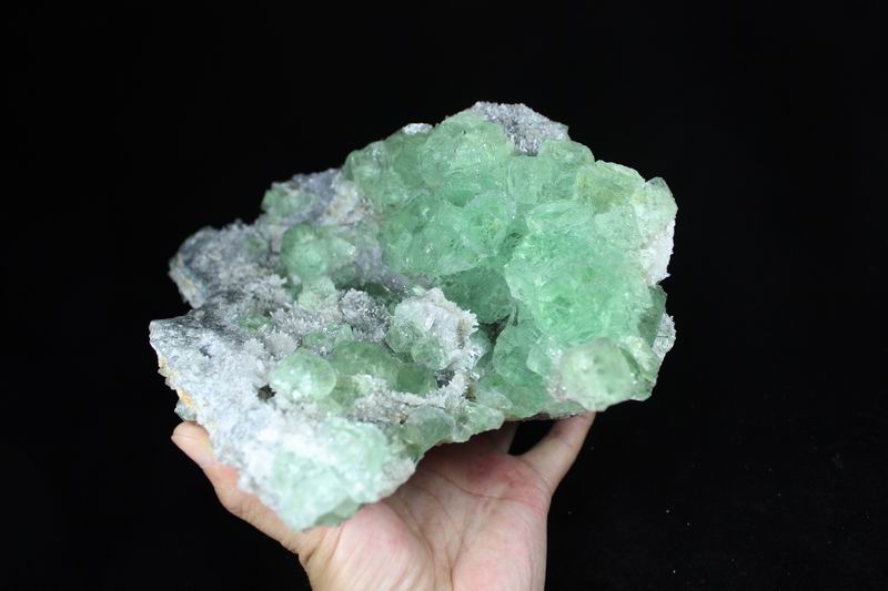 click on image to enlarge Green Fluorite on Quartz CM541760 USD250.00 Size: 18*16.5*5cm Weight: 2325g Fujian, China