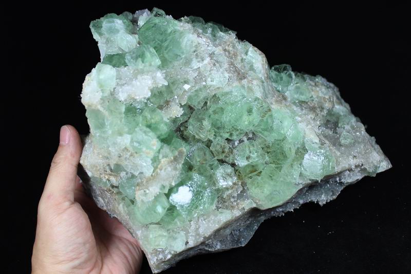 click on image to enlarge Green Fluorite on Quartz CM521759 USD498.00 Size: 26*19*14cm Weight: 5335g Fujian, China