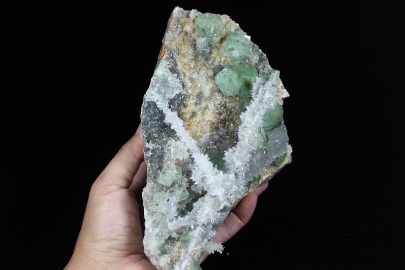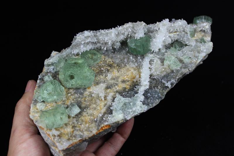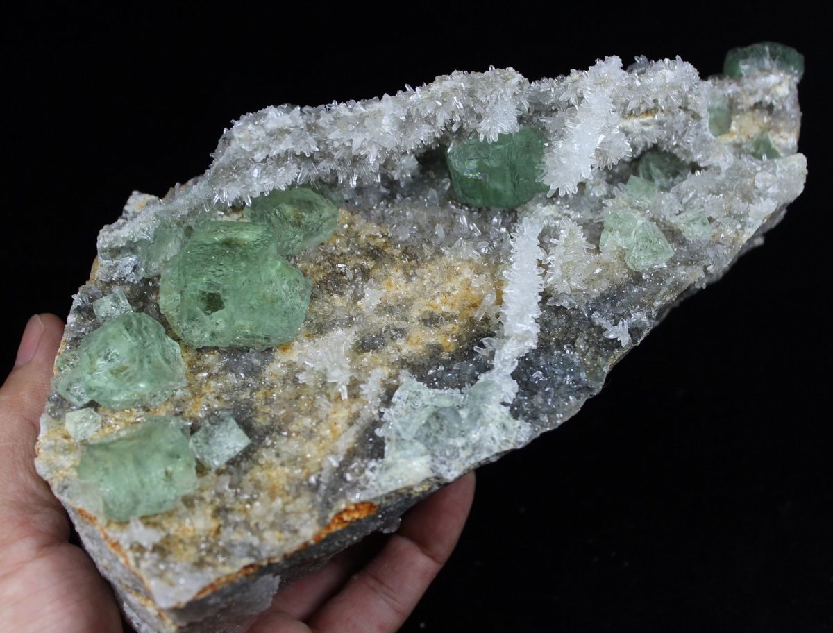 click on image to enlarge Green Fluorite on Quartz CM551761 USD250.00 Size: 21*14*9.5cm Weight: 2040g Fujian, China