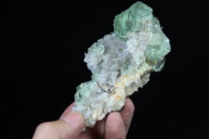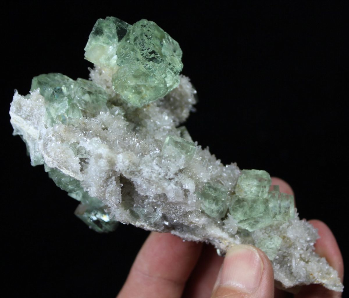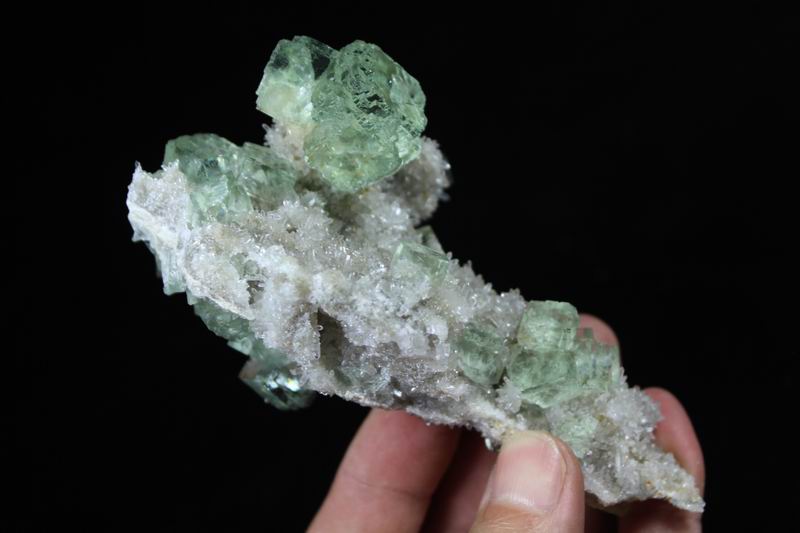 click on image to enlarge Green Fluorite on Quartz CM561762 USD168.00 Size: 11.5*5.5*6.5cm Weight: 200g Fujian, China