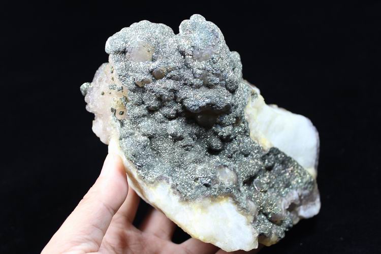Pyrite on Fluorite on Quartz CM582376 USD68.00 Size: 15.5*7.3*6cm Weight: 915g De'an, Jiangxi