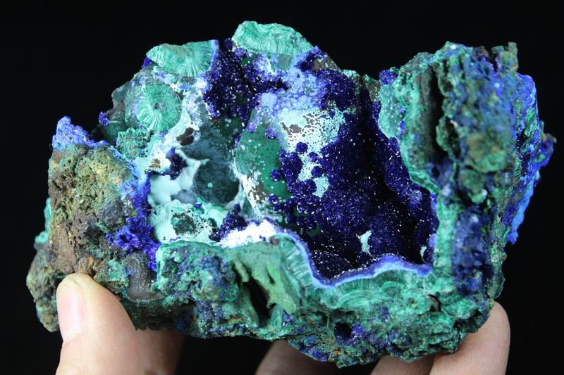 click on image to enlarge Azurite & Malachite CM573130 USD148.00 Size: 9.5*8*7cm Weight: 410g Liufengshan, Anhui