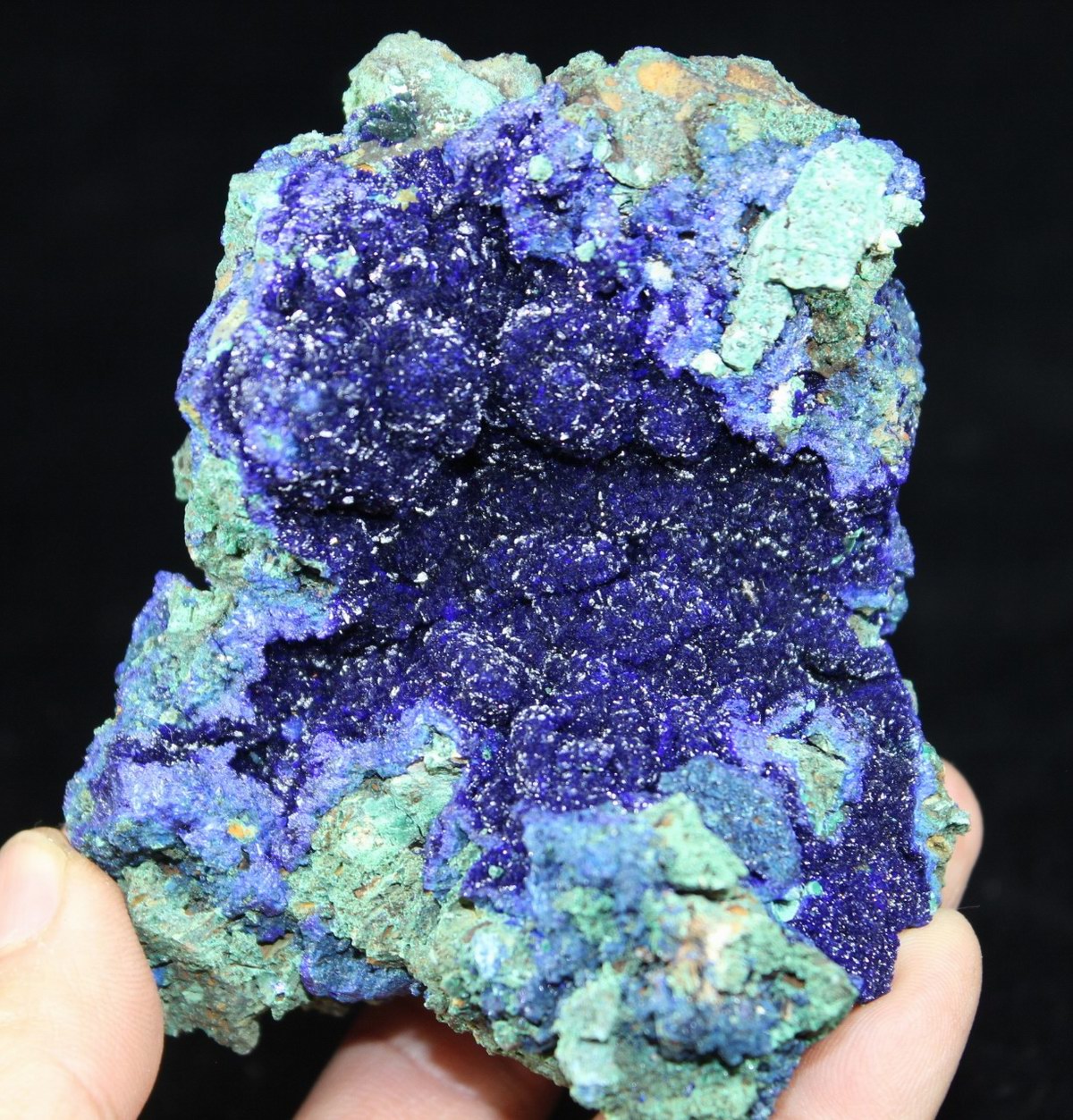 click on image to enlarge Azurite & Malachite CM533127 USD250.00 Size: 9.5*8*7.5cm Weight: 480g Liufengshan, Anhui